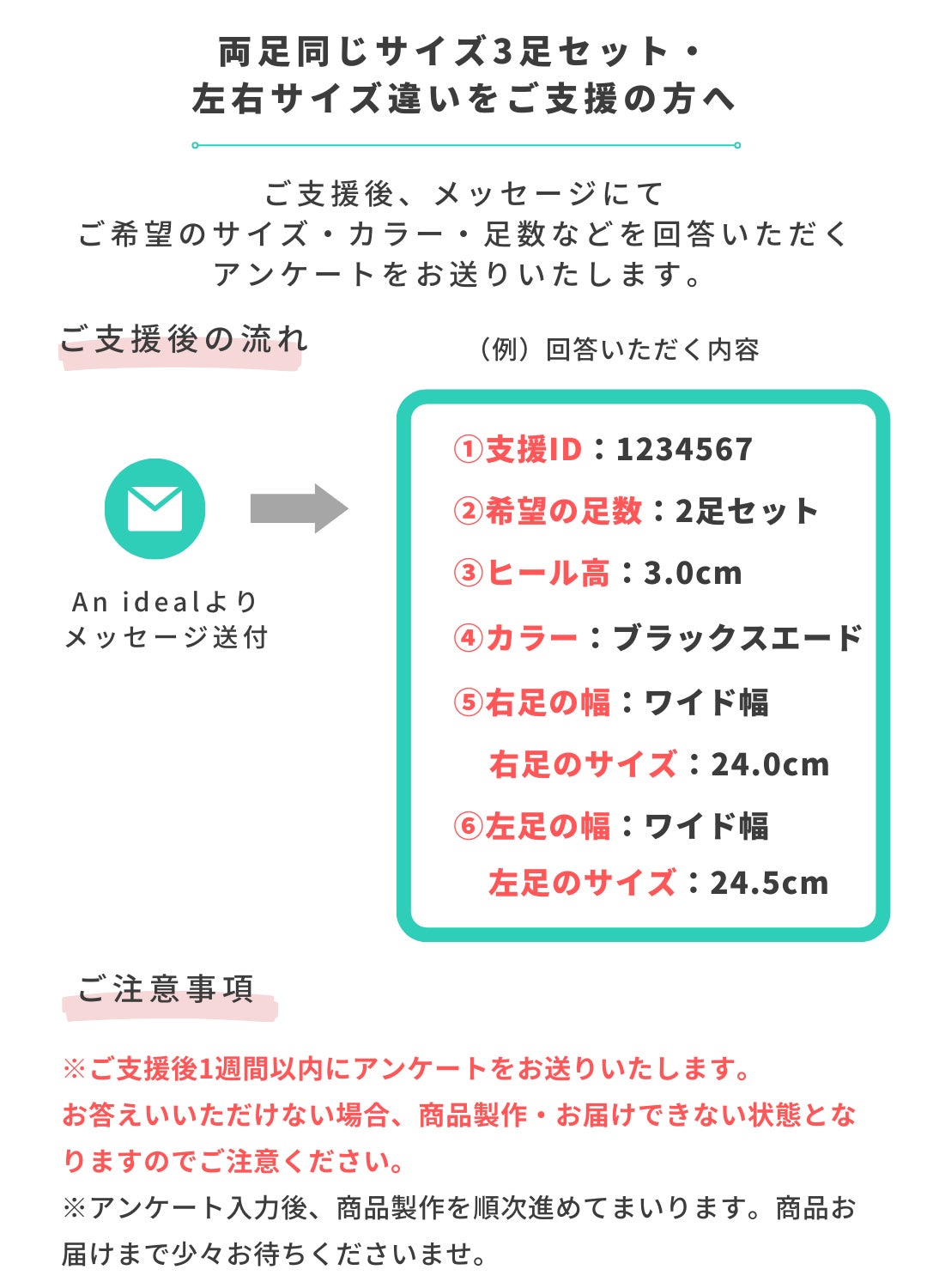 そこでAn idealでは、「両足別サイズ・足幅」での注文もプラス料金なしでできるようにしています。