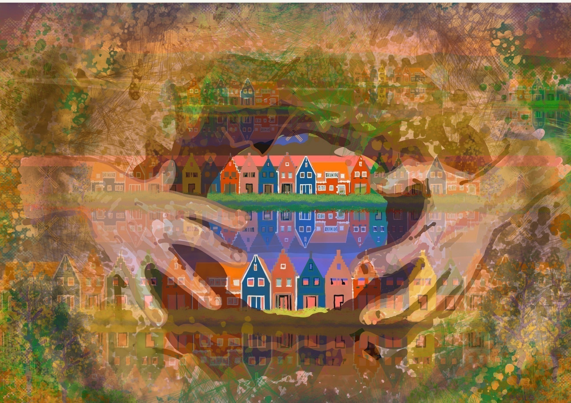 ドーナツの起源がオランダであることを知り、それを念頭において、この世界感を楽しんで行くことに注力して何度も何度も描き直しながら製作いたしました。