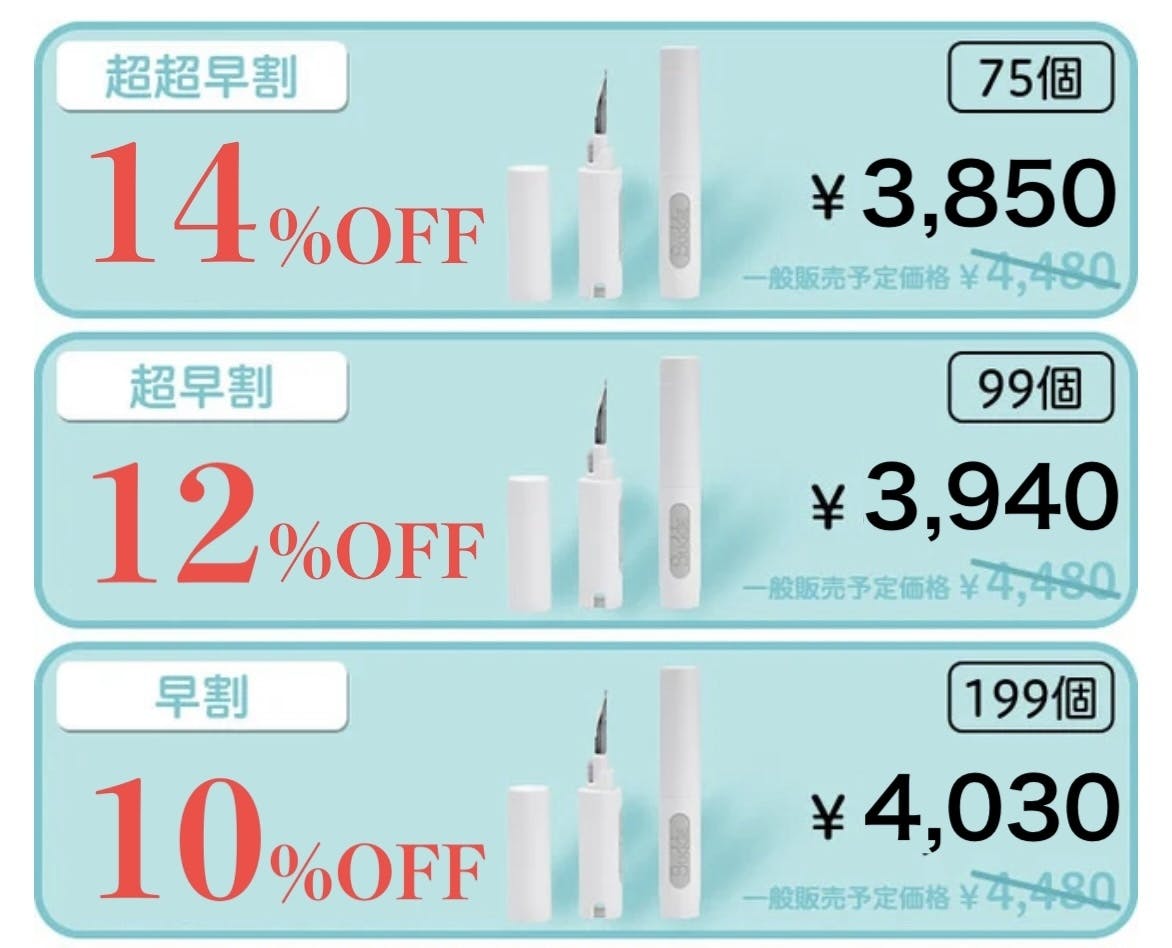※想定を上回る皆様から購入を頂き、量産体制を更に充実させることができた場合、販売価格が予定価格を下回る可能性がございます。