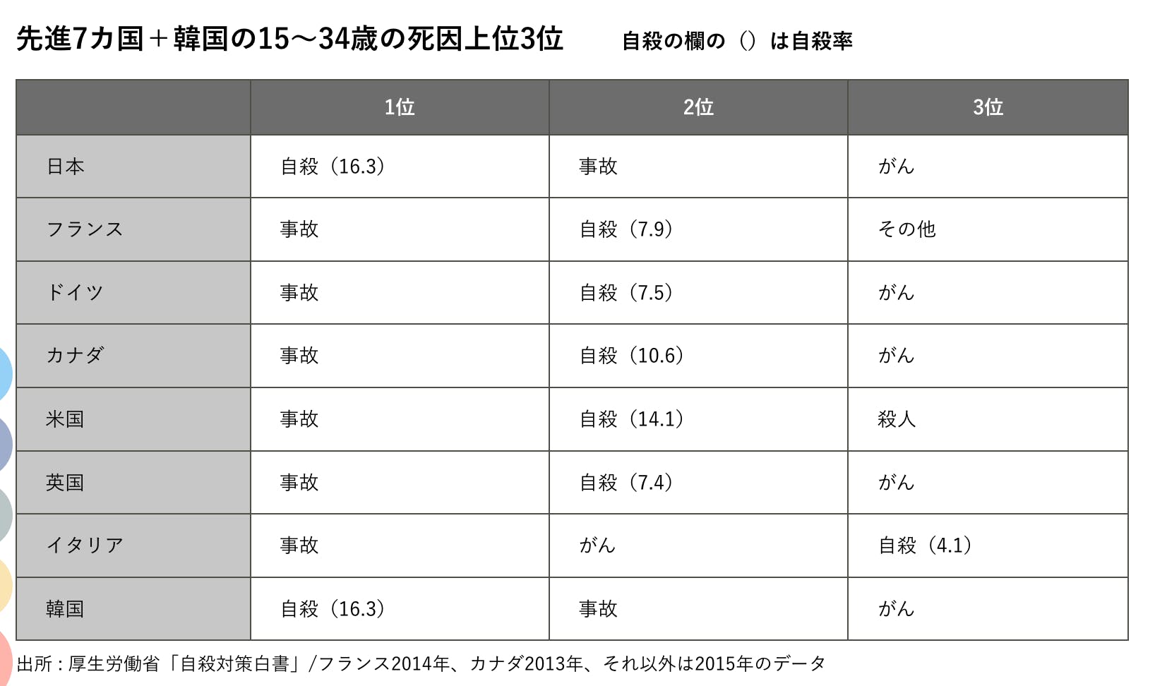 若者の死因1位が自殺なのは先進国で日本のみなのです。