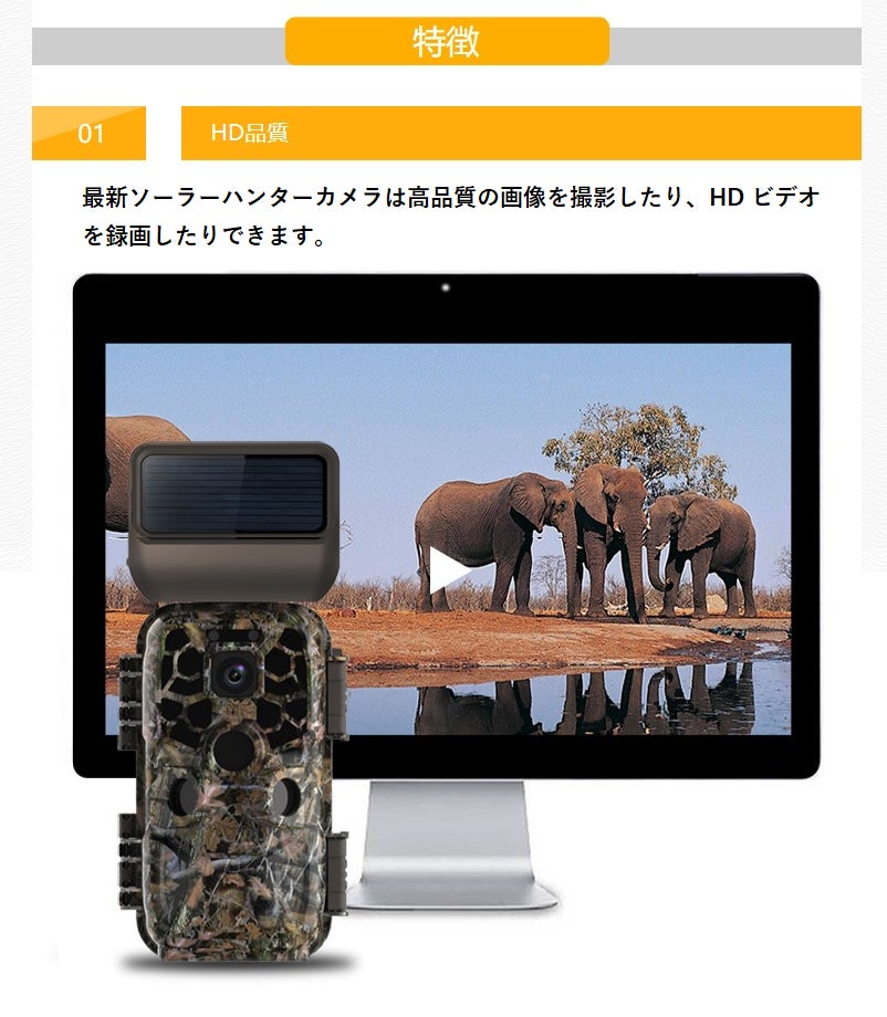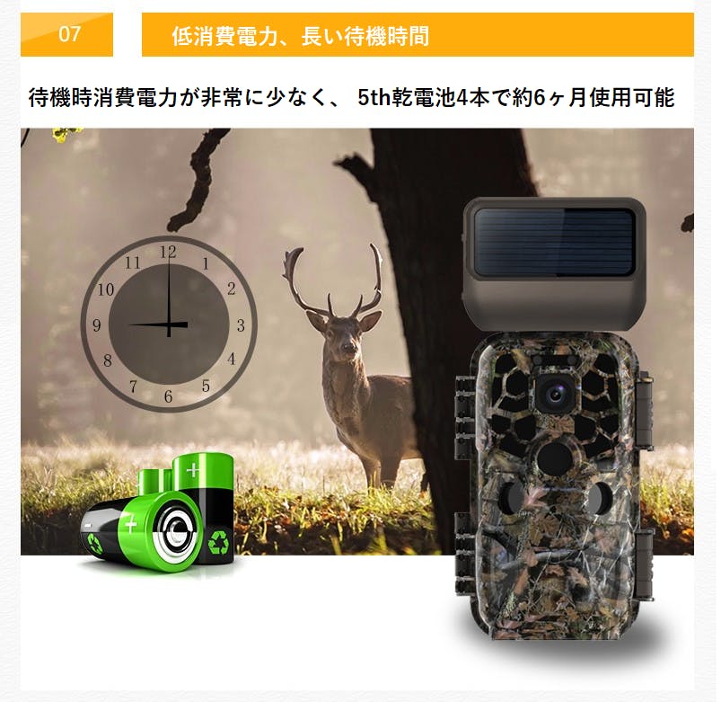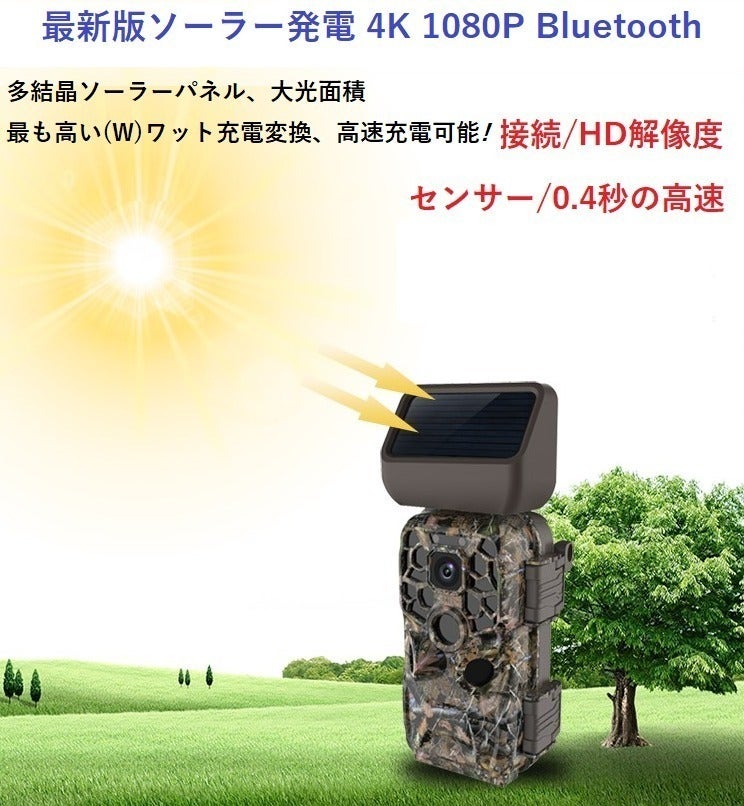 ・最新型 太陽光で永続動作 防犯カメラ 屋外 ソーラーパネル付き 防水 防塵 IP65対応 1080p対応 不可視光赤外線LED トレイルカメラ 監視カメラ 動体検知 人感センサー 夜間対応 ソーラー発電電池式 自動上書き録画