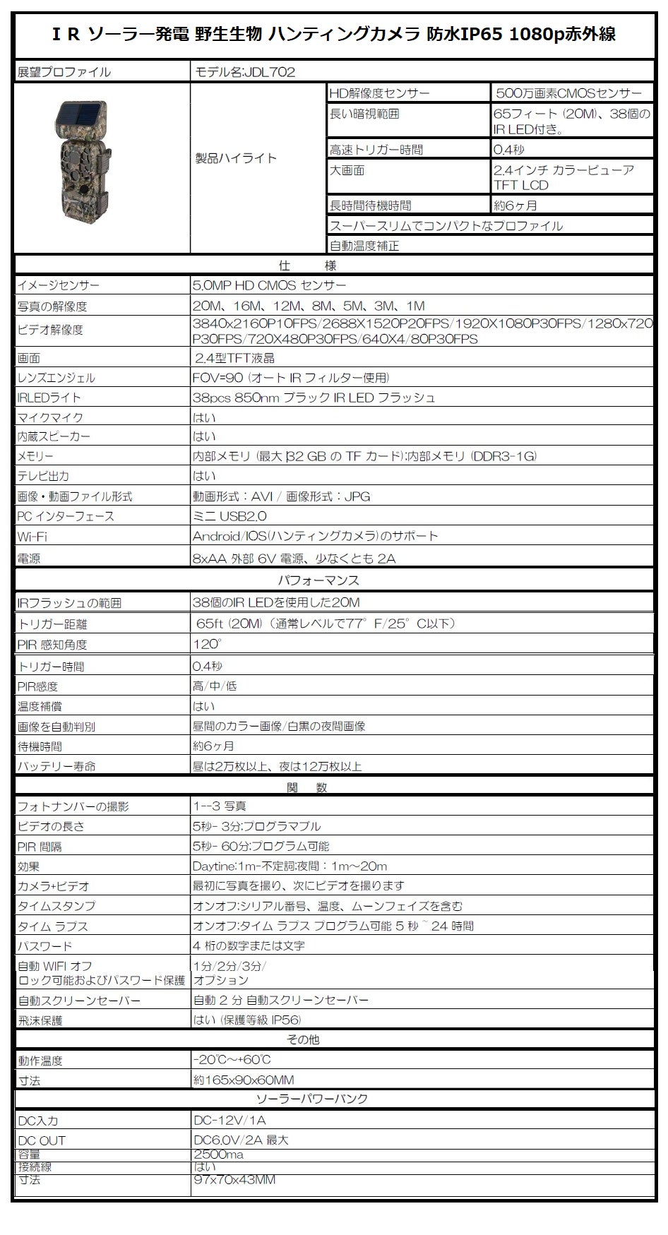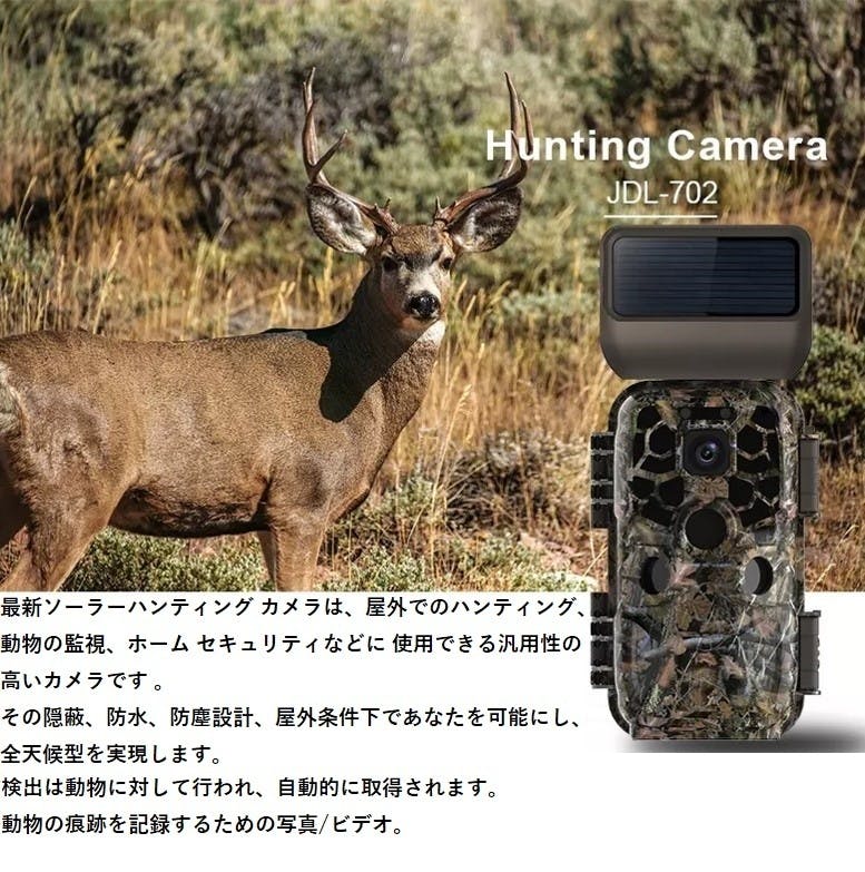 IR 最新版 ソーラー発電 4K 1080P /HD解像度センサー/0.4秒の高速トリガー時間/防水IP65/長い待機時/長い暗視範囲/動作温、ソーラーパネルリモコン付き最新HDKing JDL-702 4KWifiサーマルハンティングトレイルカメラ、最新 418wifi 狩猟トレイルソーラーパネルリモコン!