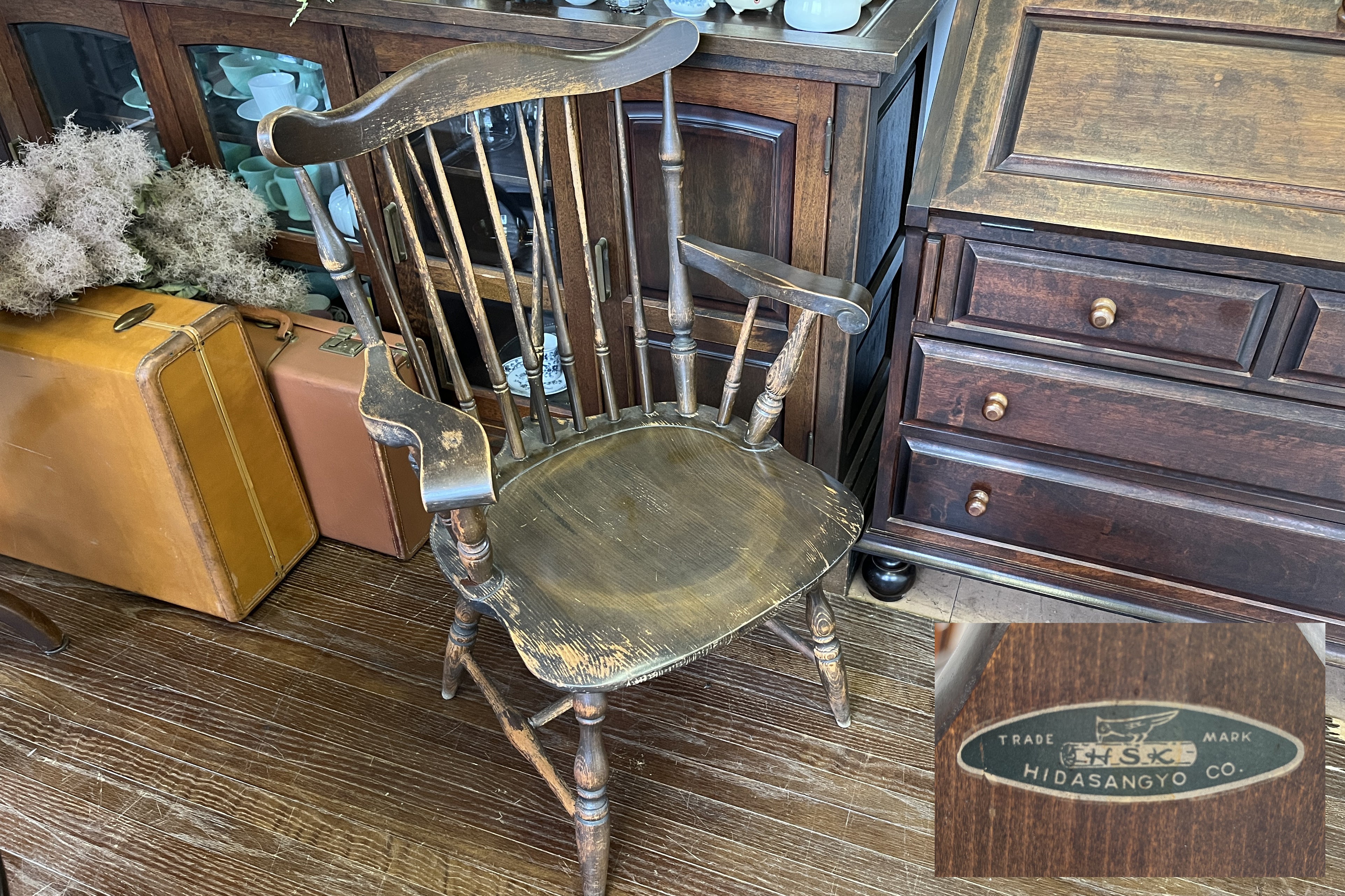 ※HIDA飛騨産業の希少なヴィンテージ椅子アームチェア「魔法の椅子」です。(ロゴマーク:1945年~1951年製造の品)