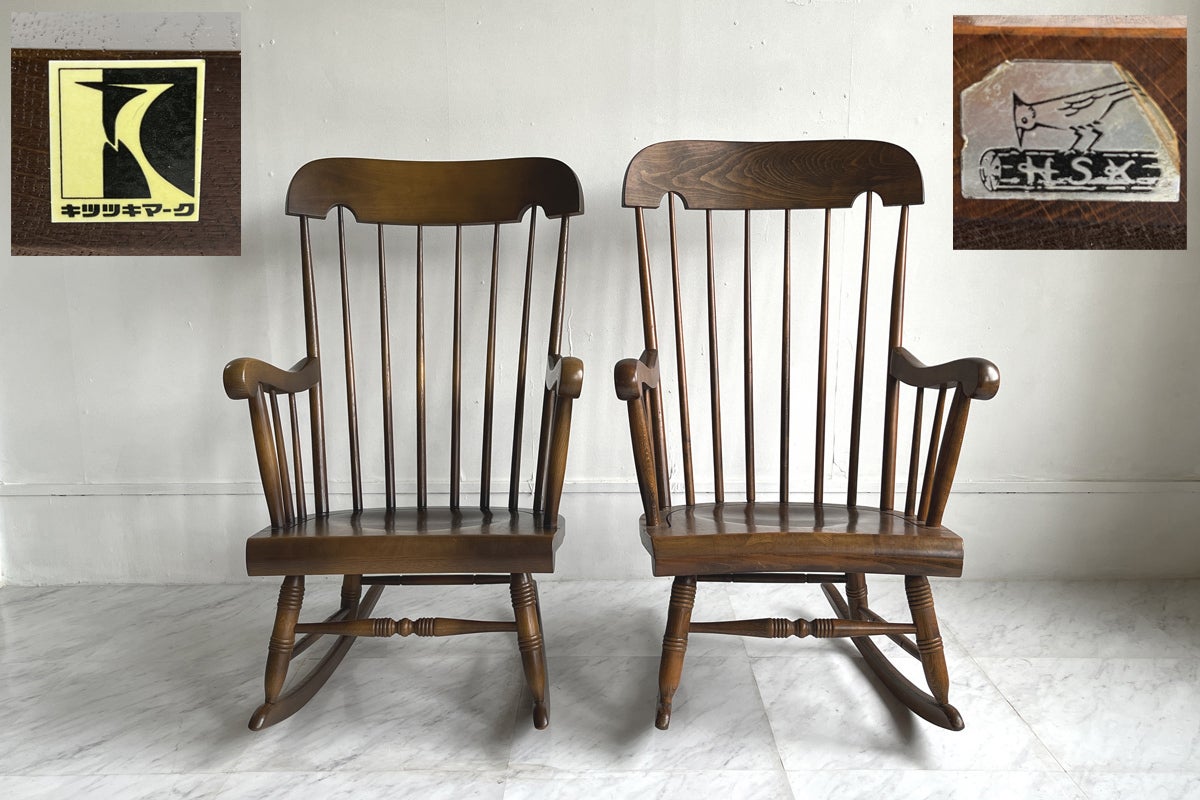※HIDA飛騨産業の穂高のロッキングチェア「New(左) & Vintage(右/ロゴマーク:1952年~1969年製造の品)