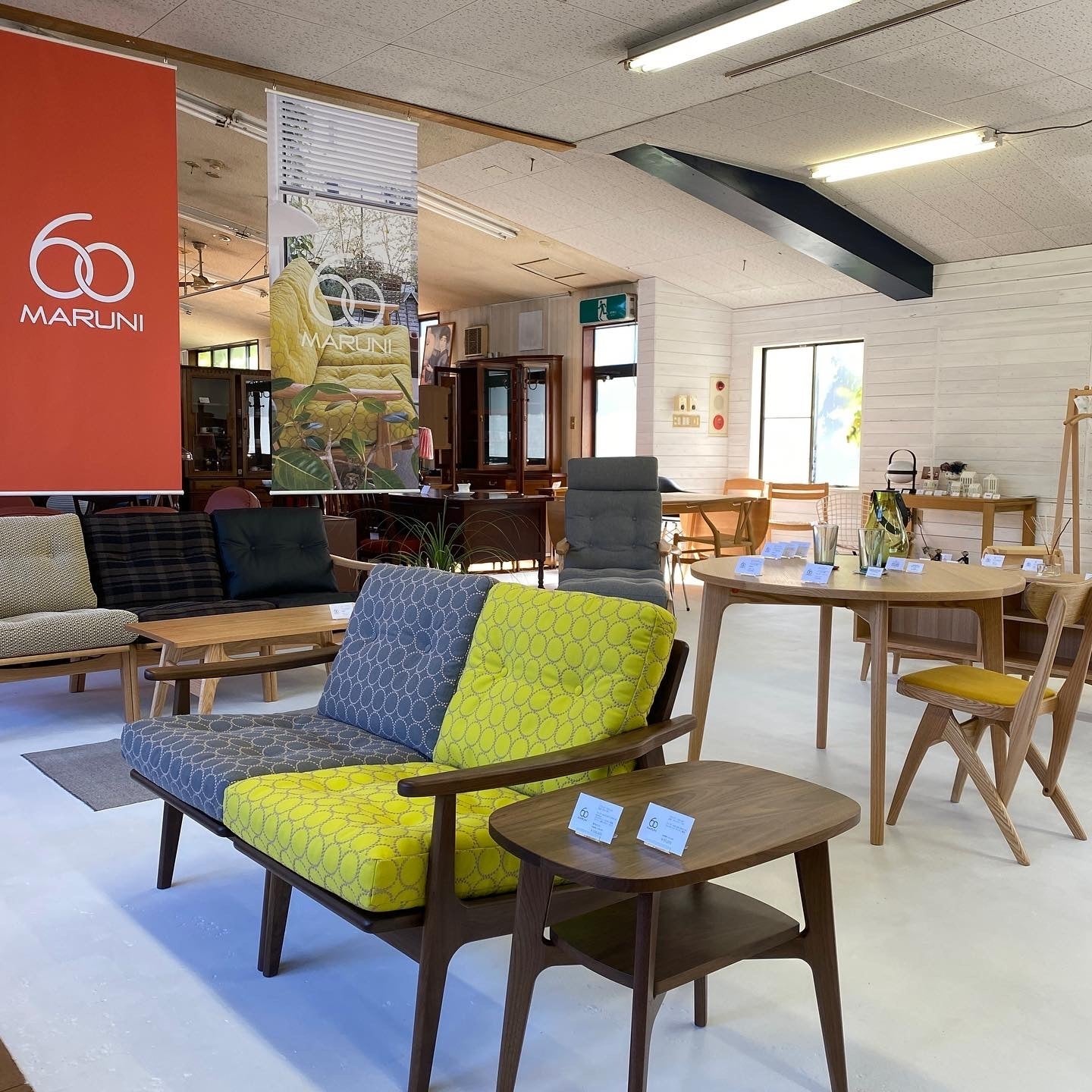 そこで、新品家具を取り扱うならば、岩手県でまだ取り扱い店舗のない、私たちが大好きな「マルニ60(マルニロクマル)」を扱いたいと思い、数年前に一度来社して下さったマルニ木工のご担当者様に、当たって砕けろの精神で問い合わせをしました。そして、私たちが目指す「ちょっとだけ贅沢な」ライフスタイルショップのコンセプトや「田舎でも、ちょっとおしゃれに過ごしたい」と、いうお客様の声を企画書にまとめ、聞いていただき検討していただきました。