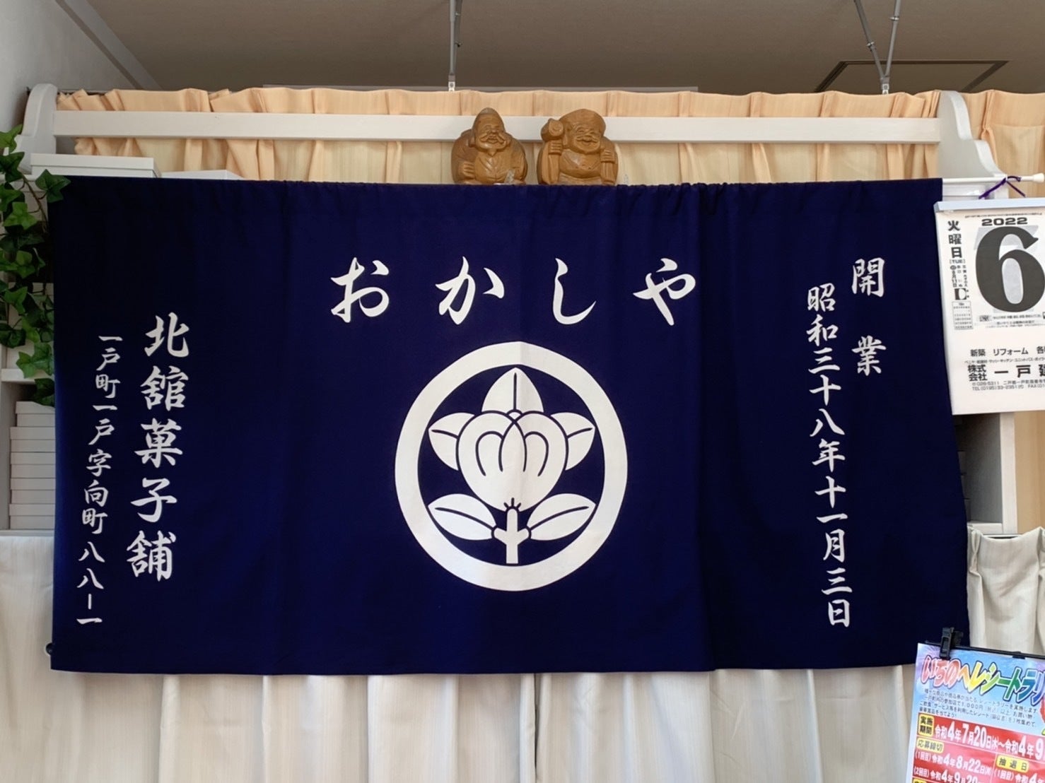 今回は、一戸町内に店舗を構えるお菓子屋さん「北舘菓子舗」を紹介します。北舘菓子舗さんは、町内を流れる馬淵川沿いにあります。創業59年を迎えるお店で、町内で人気のお菓子屋さんになります。現在先代の後を継いだ姉妹二人でお店を開いており、営業日は、SNSやサイトに記載されている日が基本の不定休となっています。主要な商品は、丹精込めて練り上げられた餡と荒く刻んだくるみがぎのっしり詰まった「くるみもなか」。こちらは、当店スタッフも大好きな一品で何度も購入をしたり、お土産などにもしています。重量感が他のもなかと違い、一つ食べ応えがとてもあり、差し入れとしても自分用のお菓子としてもとっても魅力的なお菓子です。他にも餡が詰まった「一戸招福パイ」、もっちりとした餅菓子の「もやの山」、みそ餡が売りの「北の舘みそまんじゅう」、チーズのカリカリがおいしい「北の銀河クッキー」や、一戸町にある世界遺産の御所野縄文公園にて展示されている「鼻曲り土面」をモチーフに作られた「はなまがりクッキー」、耳飾りをモチーフにした「みみかざりクッキー」などもあります。クッキーは見た目のインパクトだけでなく、一戸町内産の雑穀アマランサスを使用しているため、話題性も抜群です。一戸町に来たときのお土産としていかがでしょうか?お店の中には、お菓子だけでなく、鼻曲り土面をモチーフにした「はなまがりペン」や御所野縄文公園モチーフのテープなども販売しています。待っている間に別のものを楽しんでもらおうという思いもあり店内には、このようにお菓子以外のものも置かれています。今回、取材をしたなかで一戸町でお店を開いている先輩として色々なことお話を聞くことが出来ました。私たちが、クラウドファンディングに挑戦しているということを「一戸町の明るいニュースで、こういうことをしている人がいて嬉しい」と言って下さいました。私たちとしても、「一戸町でもこんなことが出来るんだよ!」という見本のようになれたら良いなという思いがあるため、とてもうれしく思いました。また、今後については、「世界遺産になったことをきっかけに都会とは違った一戸町は一戸町のペースで町を盛り上げて行きたい。もっとみんなとポジティブなつながりを作っていきたい」とのことでした。取材を通じて、色々なお話を今回させて頂きました。お話をすることで、自分たちだけでは見えていなかった面や、共感できる点など多くの気づきがあり今後の参考になりました。