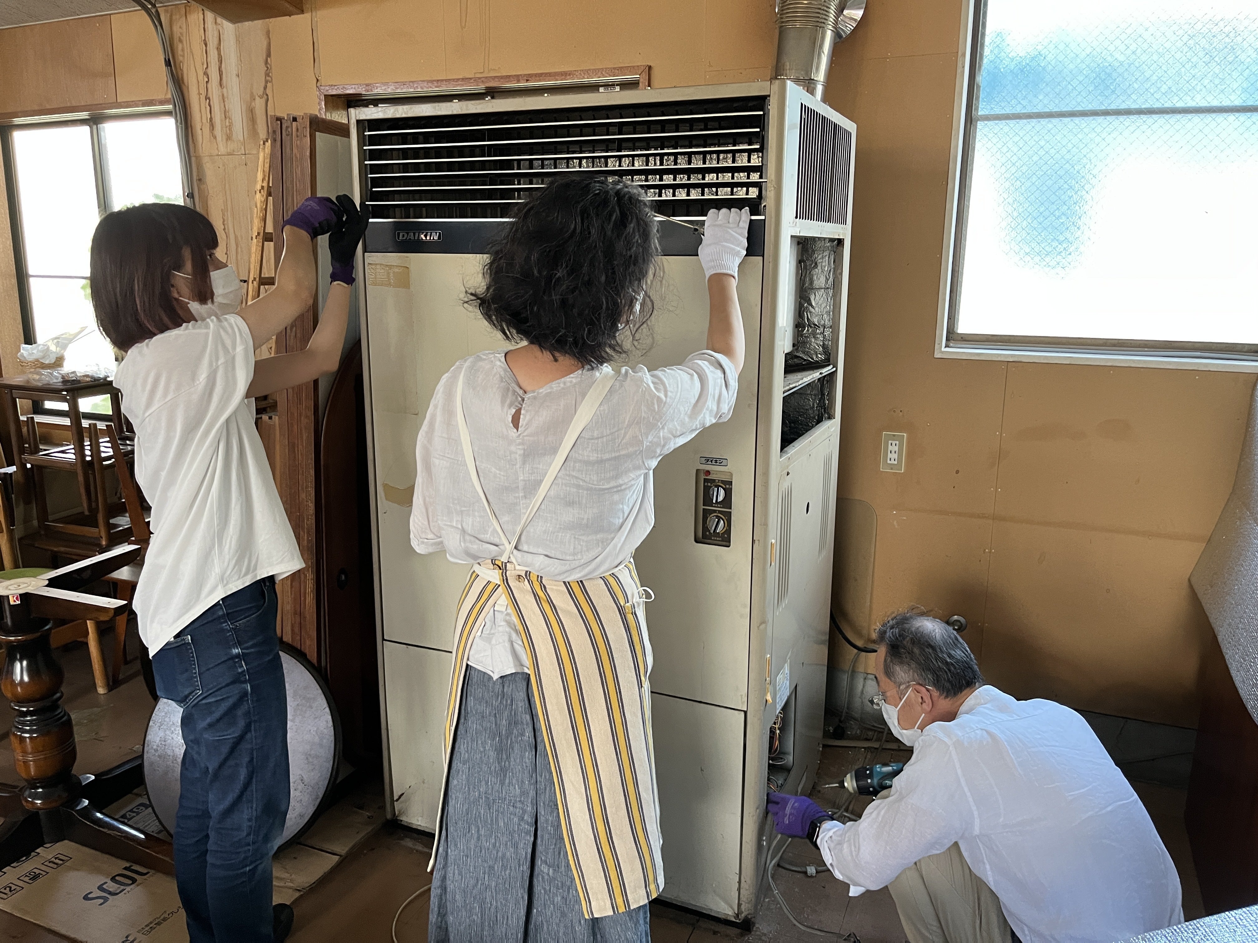 いよいよクラウドファンディングのプロジェクトの一部である店舗(現:倉庫)の内装工事の準備作業が始まりました。本文にも一部書かせていただきましたが、倉庫として使用していた数十年の物件なので、全使用者の様々な残置物があります。内装工事のメインになる工事は、どうしてもプロにお任せしないといけません。11年間もお世話になっておる店舗で思いれがあるので、できることは自分たちで作業をしようと決めたのでその活動報告をしていきます。まずは、大きな残地物の撤去作業です。とにかく重くてビクともしない残置物です。まずは、商品に養生を作業をしてできる限りネジというネジを取り外して解体をしました。ようやく半分ぐらい撤去できました。それでも、重くてビクともしません。その後もコツコツとみんな無口で、カメラ担当の娘も撤去作業に参加してトコトンコンパクトにしました。数時間が過て解体ができました。煙突は、外の修繕時に外します。解体した残がいもとても重かったです。明日もお店はお休みなので残地物の撤去作業を進めます。
