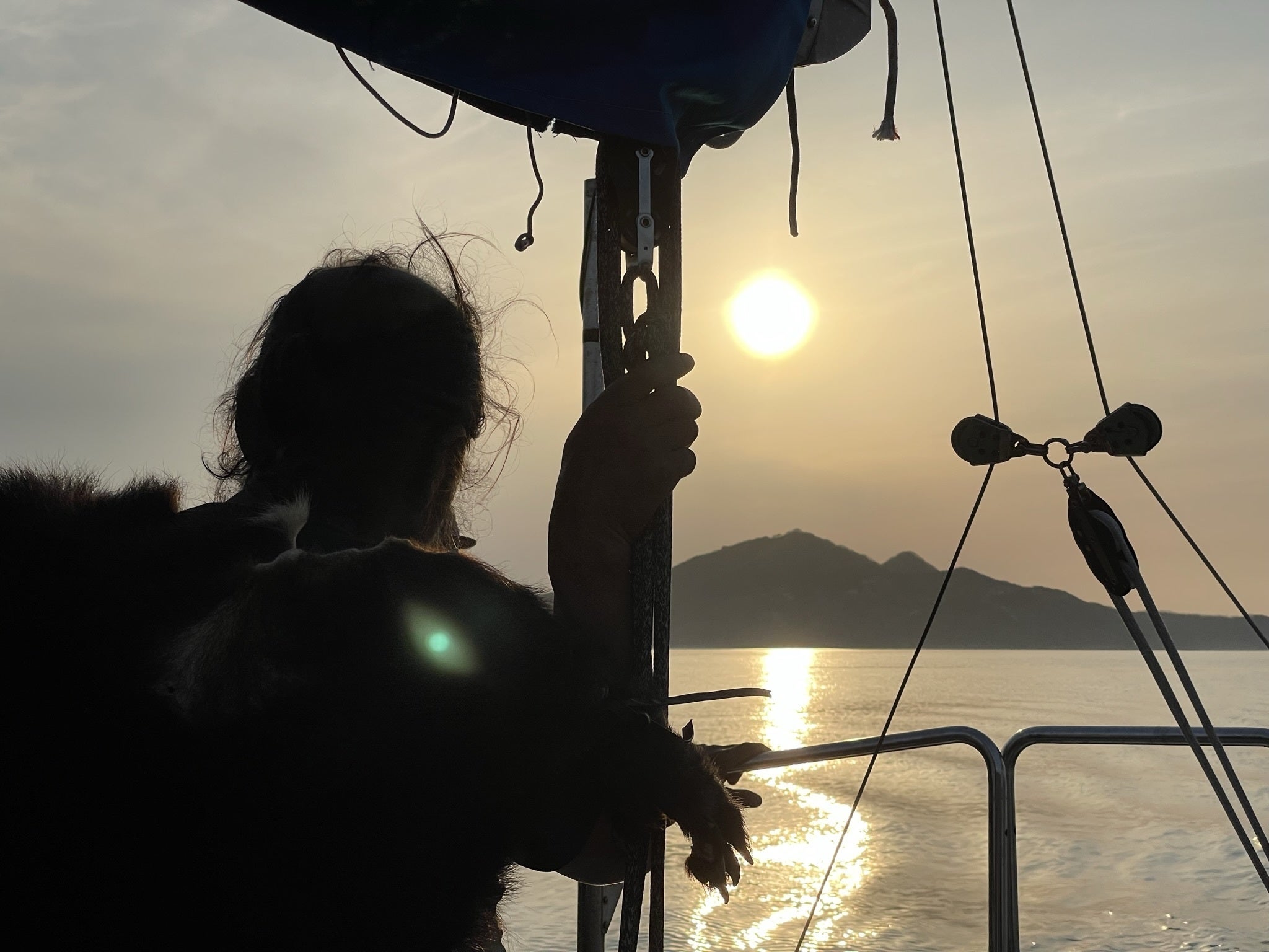 Jomonさんが本州の西端、山口県までやってきました!山口県は『3万年前の航海 徹底再現プロジェクト』において、Jomonさんが作った丸木舟「スギメ」のキャプテンを務めた漕ぎ手・原康司さんが会場の手配・設営等含め、様々なお世話をしてくださいました。ありがとうございます!原康司さんそして、イベント前の金曜日。原さんがJomonさん、事務局長の由佳ちゃん、僕を連れてヨットに乗ることに。その理由が「温泉に行く」というのだからびっくり(笑)ヨットに揺られるJomonさん、大興奮(笑)そしてそれだけではなく…原さんが瀬戸内の島、佐合島に連れて行ってくれました。その理由が「丸木舟完成後の、漕ぎ手の訓練と船の調整をする拠点としてちょうどいいんじゃないか?」というご提案でした。ちょうどいいサイズの港と浜、寝泊まりするための小屋(と原さんは仰いますが、とても立派なおうちです)、島の内と外で異なる波と潮流、周囲に点々と連なる島々は漕ぐための目標としてとても良い環境…これは丸木舟を「活用する」ための実験と訓練をする上でとてつもなく良い場所。というわけで完成・試乗の後、そう遠くないうちに海での訓練ができる!これはご縁がなければ到底できない素晴らしいご提案…そして映画の続編も決まったようなもの(笑)たくさんお世話になります!ありがとうございます!もちろんイベントも大盛況で、岡山に引き続きJomonさんには長蛇の列!晴天にも恵まれ、和やかに、そしてあっという間に2日間が終わってしまいました。山口県平生町、こんな美しい瀬戸内の海が残っているんだなぁ…と、兵庫出身の僕はうらやましい限りです。平尾町の東端辺りから空撮した夕景地元の方は「何もない」と仰いますが、今「何もない」こそが貴重な時代になってしまいました。そして「何もない」こそ、自活できる要素のすべてを備えた、むしろ「全部ある」世界なのかもしれない。そんなことを思いながらカメラを回しました。こんな美しい景色の中を進んでいく杉さん丸木舟を撮ることができるよう…全力でガンバリマス!