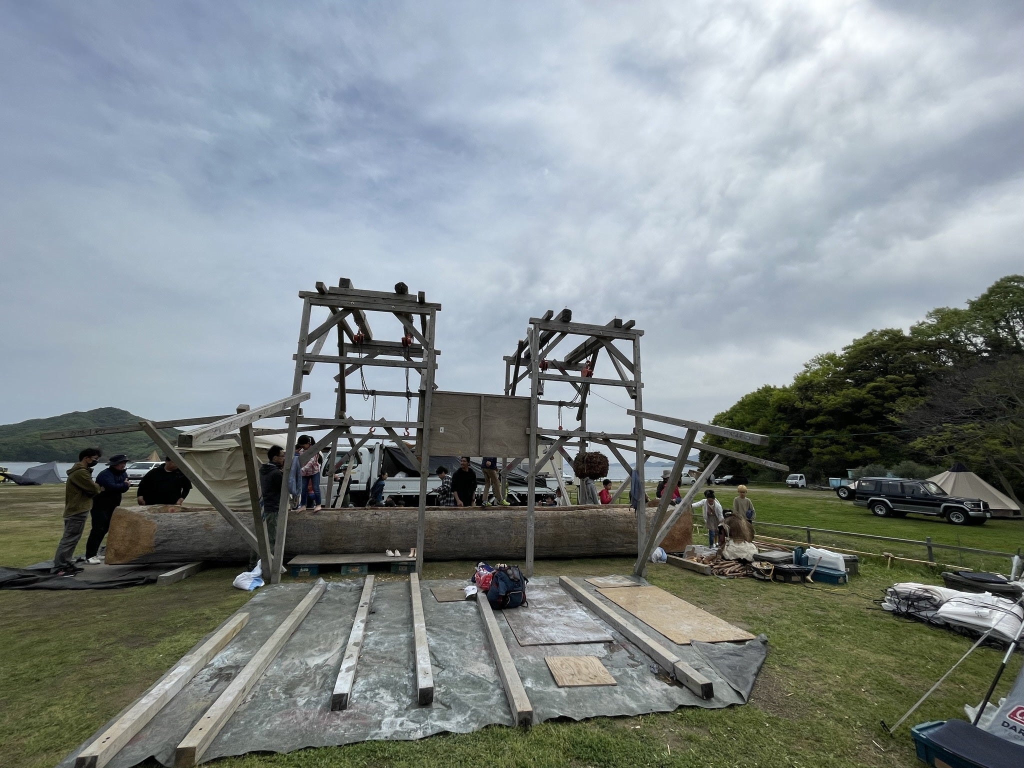 Jomonさんがやってきた!全国ツアーも32県目、兵庫県までやってきました。兵庫県の会場はこれまでとは全く違う雰囲気の場所…ここは新神戸駅すぐの竹中大工道具館。ビルに囲まれた敷地に杉さんが。いつもはキャンプ場など、山の中や海のそばが多かったのですが、都会の真ん中にいる杉さん、ビックリしているのではないでしょうか(笑)扉写真の右後ろに立っているグレーの大きな建物は、生前の杉さんとほぼ同じ高さの45m。都会ならではの比較もまた面白く、参加された方々にも良い場所だったのではないでしょうか。私事ではありますが、兵庫は監督・にしやまの生まれ故郷。…とはいえ僕の育った場所は神戸の真反対のド田舎ですが(笑)、故郷でこのような形のイベントを撮影させていただくのはまた面白く、良い経験をさせていただきました。たくさん集まってくれたおかげで、杉さんも『舟らしさ』がどんどん増してきました。兵庫が終わると本州は残り3県、ゴールの沖縄まであと17県、一昨年から撮り始めましたが、気づけばあと4か月でツアーゴールの沖縄県…今後1か月、岡山・山口・香川にて撮影を行う予定です。また新しく出会える方々、久々に再開できる方々、ともに楽しみでなりません。ゴールが見えてきたからこそ、一つ一つの出会いを大切に、じっくり撮らせていただきます。命をいただいた杉さんのためにも!それではまた!