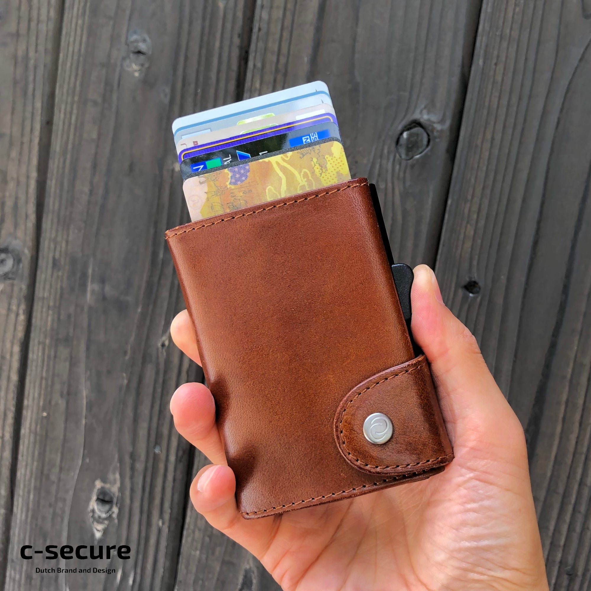 財布をポケットから取り出し、片手で握ったままカードケース横のスライドを上にあげていくとカードが徐々に出てきます。