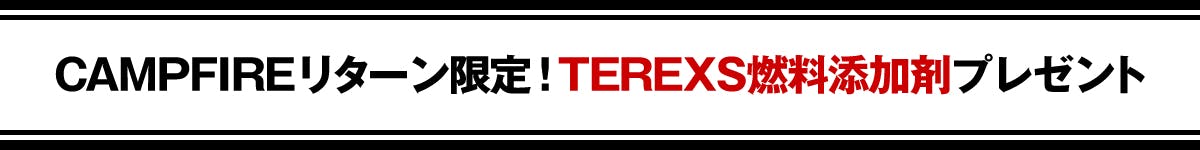 CAMPFIREよりリターン購入頂けた場合のみ、TEREXS燃料添加剤をプレゼント致します。
