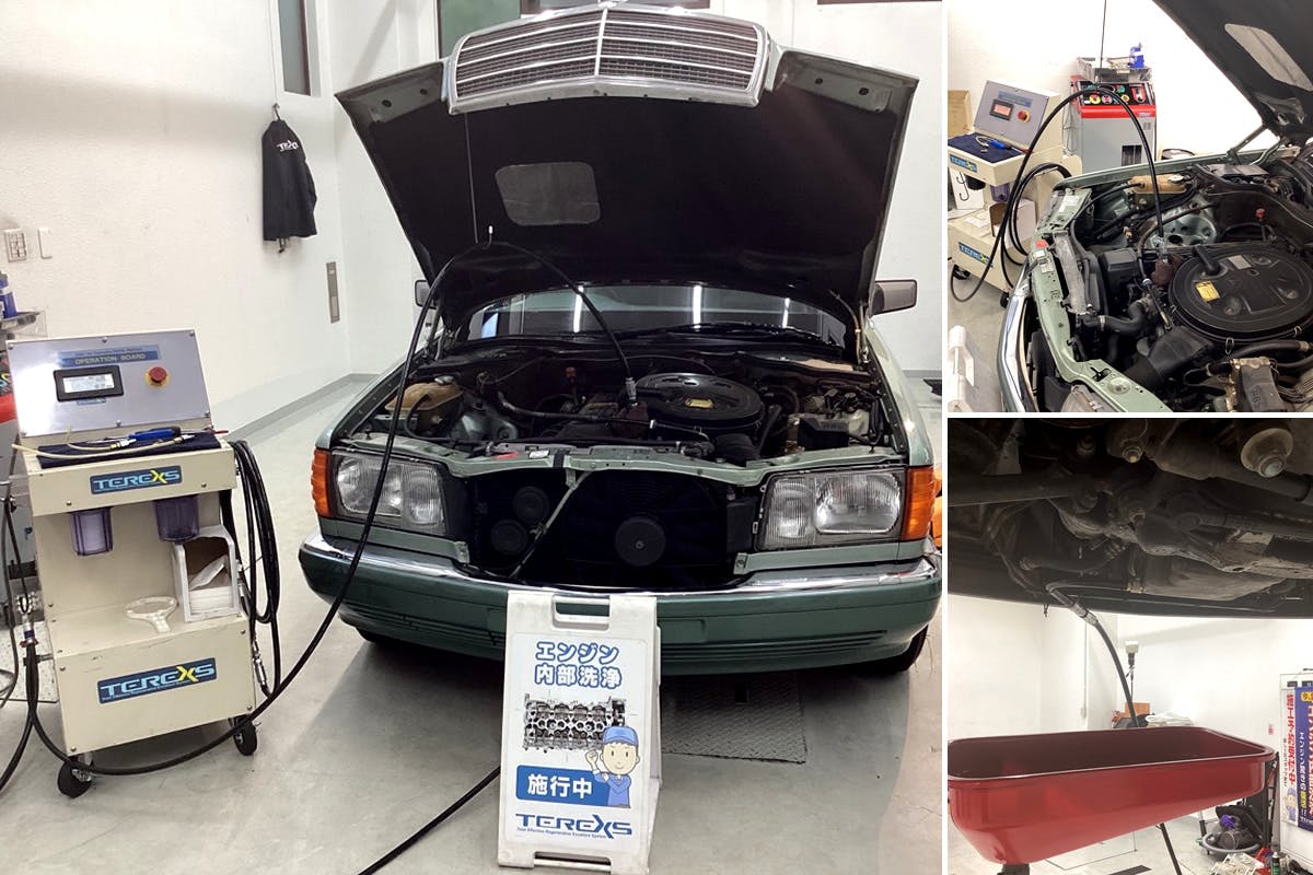 施工は独自のノウハウより開発されたエンジン内部洗浄機器【TEREXS】とエンジンを接続するだけで、エンジン内部の汚れを除去し、徹底的に洗浄致します。