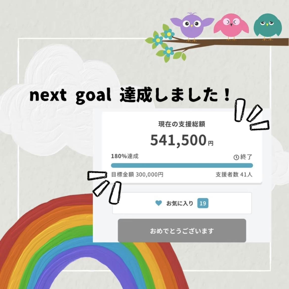 なんと皆様のお力添えをいただき、ネクストゴールを達成することができました!