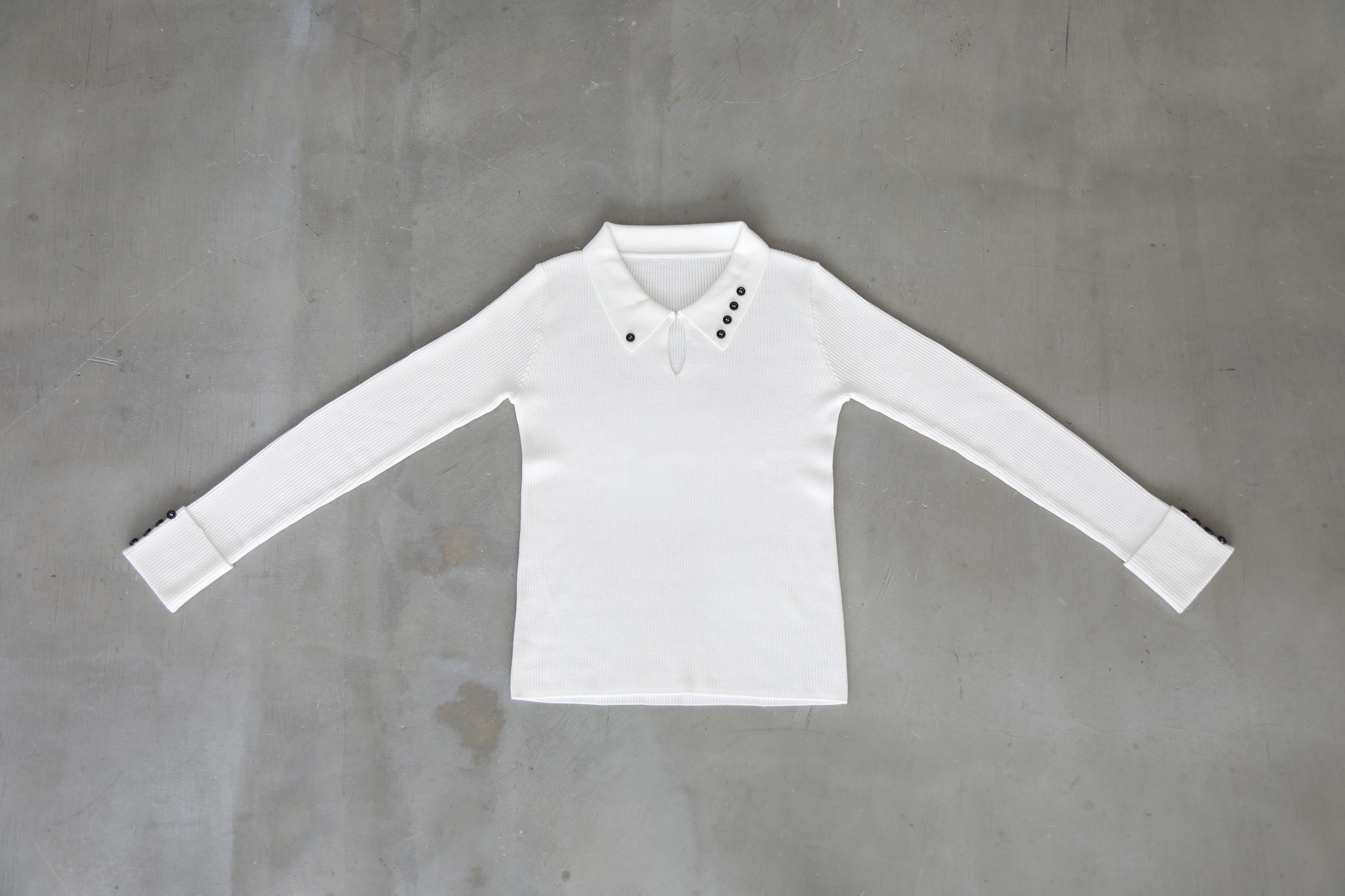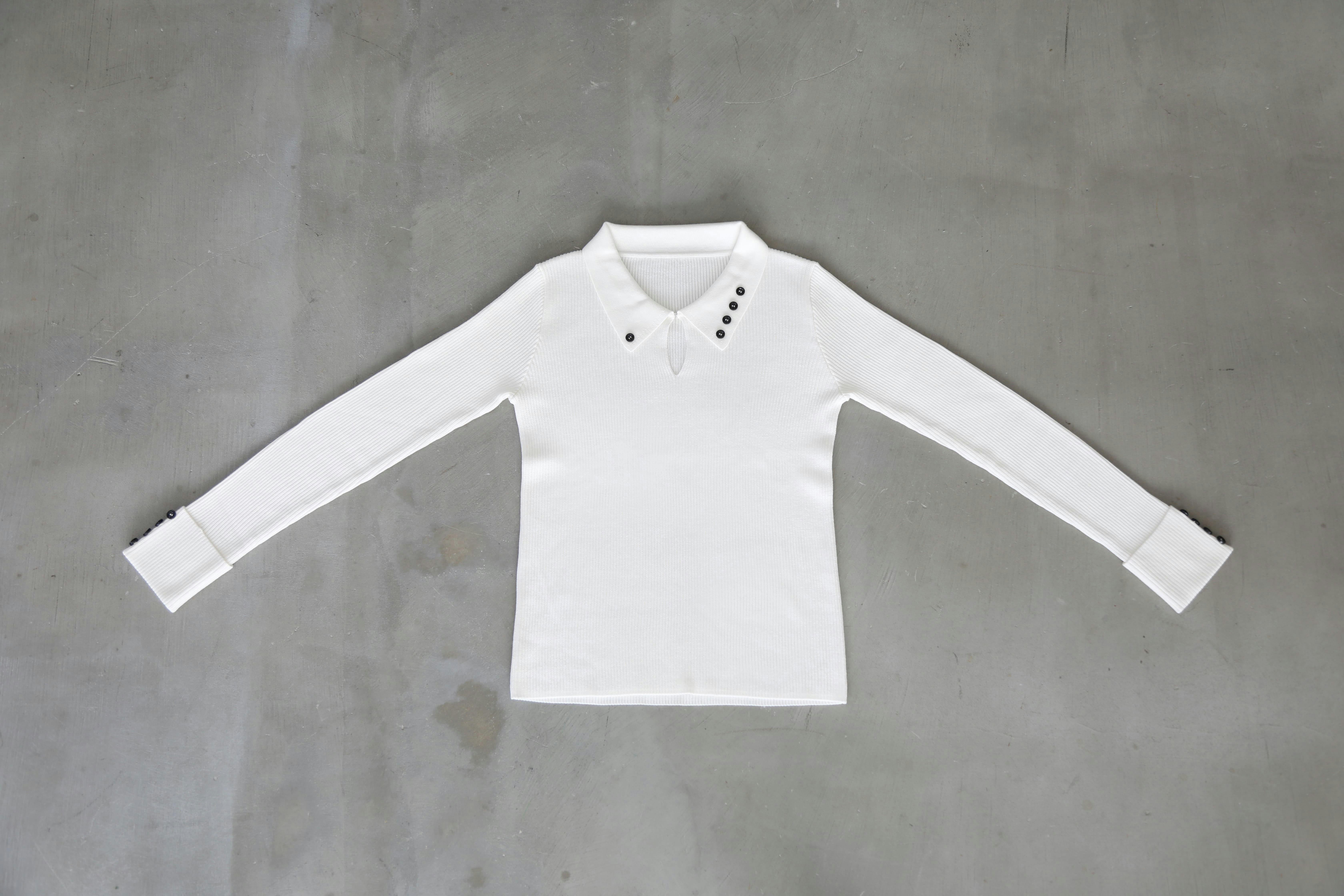 「可愛くて、高級感のある、モードな」というyushimのブランドイメージを忠実に再現し、大人可愛く着こなせるこだわりのポロシャツが完成しました。