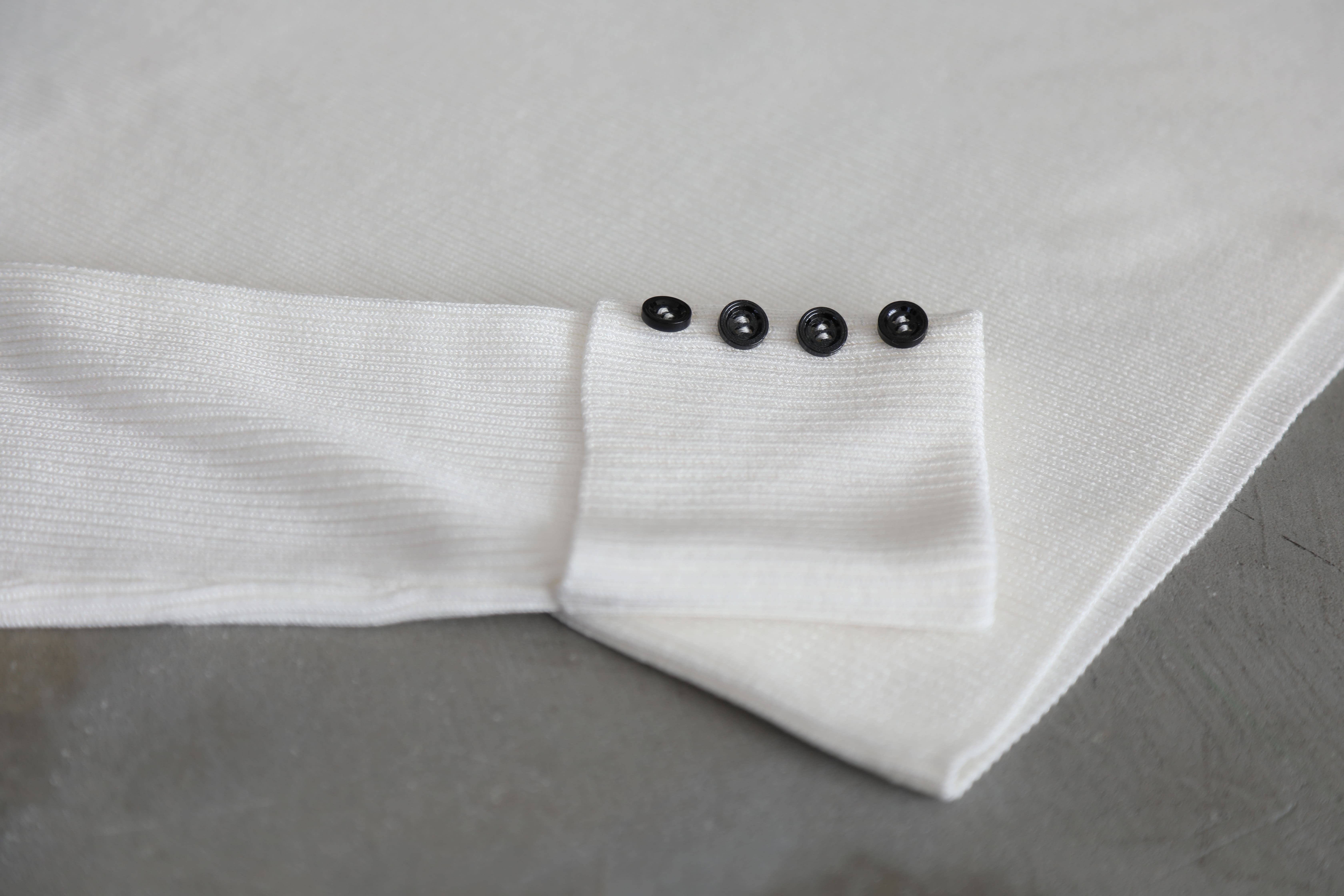 ・袖口のリブ:普通のリブよりも狭く、袖先がキュッとまとまった印象に仕上げました。人と被らない、コンパクトで可愛らしい袖先になっています。