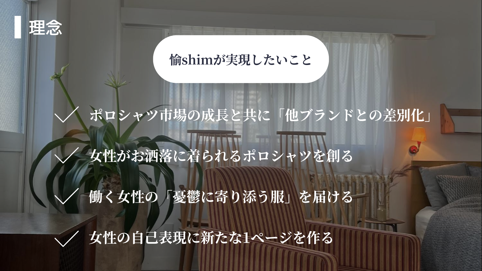 働く女性の心に寄り添う服を作りお届けすることで、気分を上げて1日を愉しんでいただきたい。