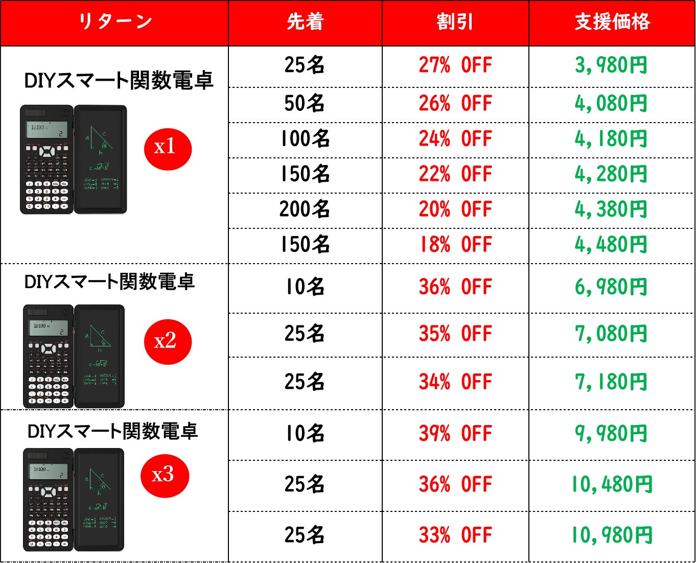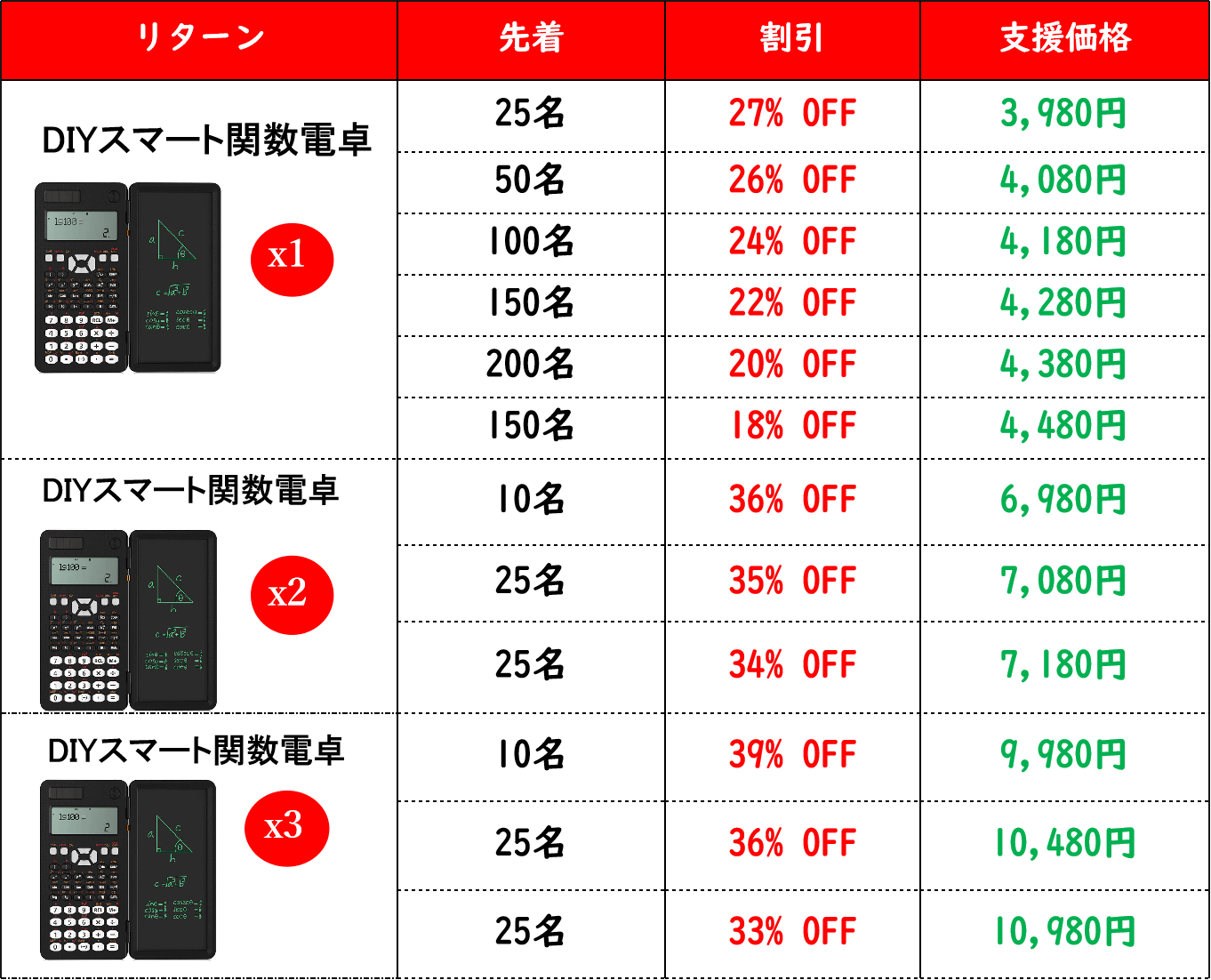 ※想定を上回る皆様から支援を頂き、量産体制を更に充実させることができた場合、一般販売価格が予定価格を下回る可能性がございます。