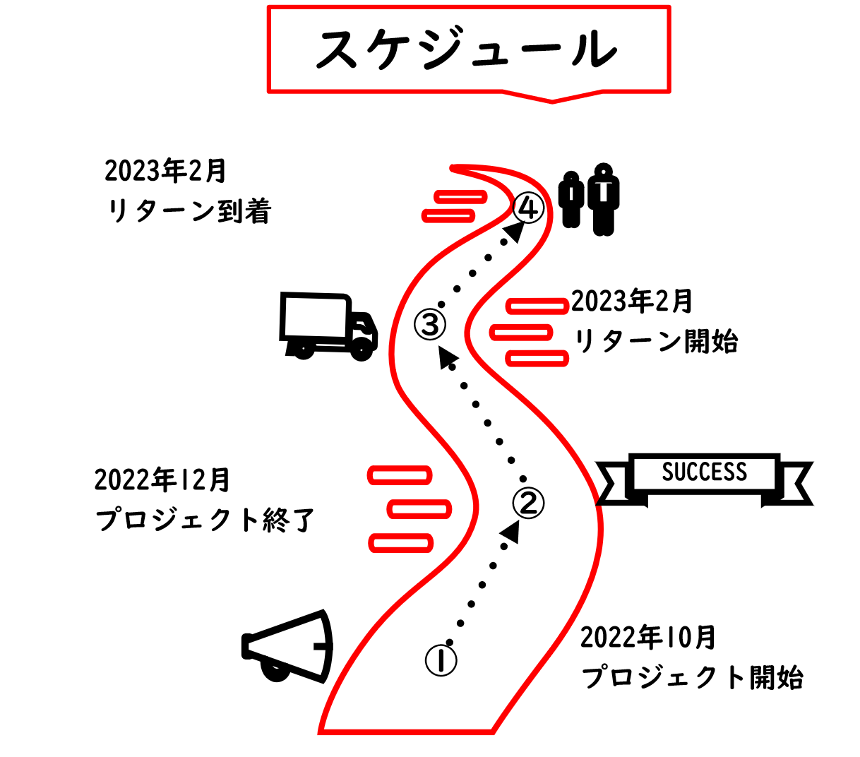 ※本文中に記載させていただいたスケジュールは、あくまでプロジェクト公開時点の予定です。支援の性質上、配送遅延のおそれがございます。