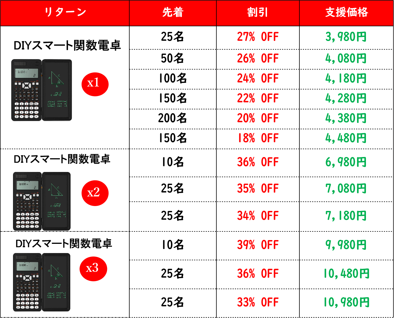 ※想定を上回る皆様から支援を頂き、量産体制を更に充実させることができた場合、一般販売価格が予定価格を下回る可能性がございます。
