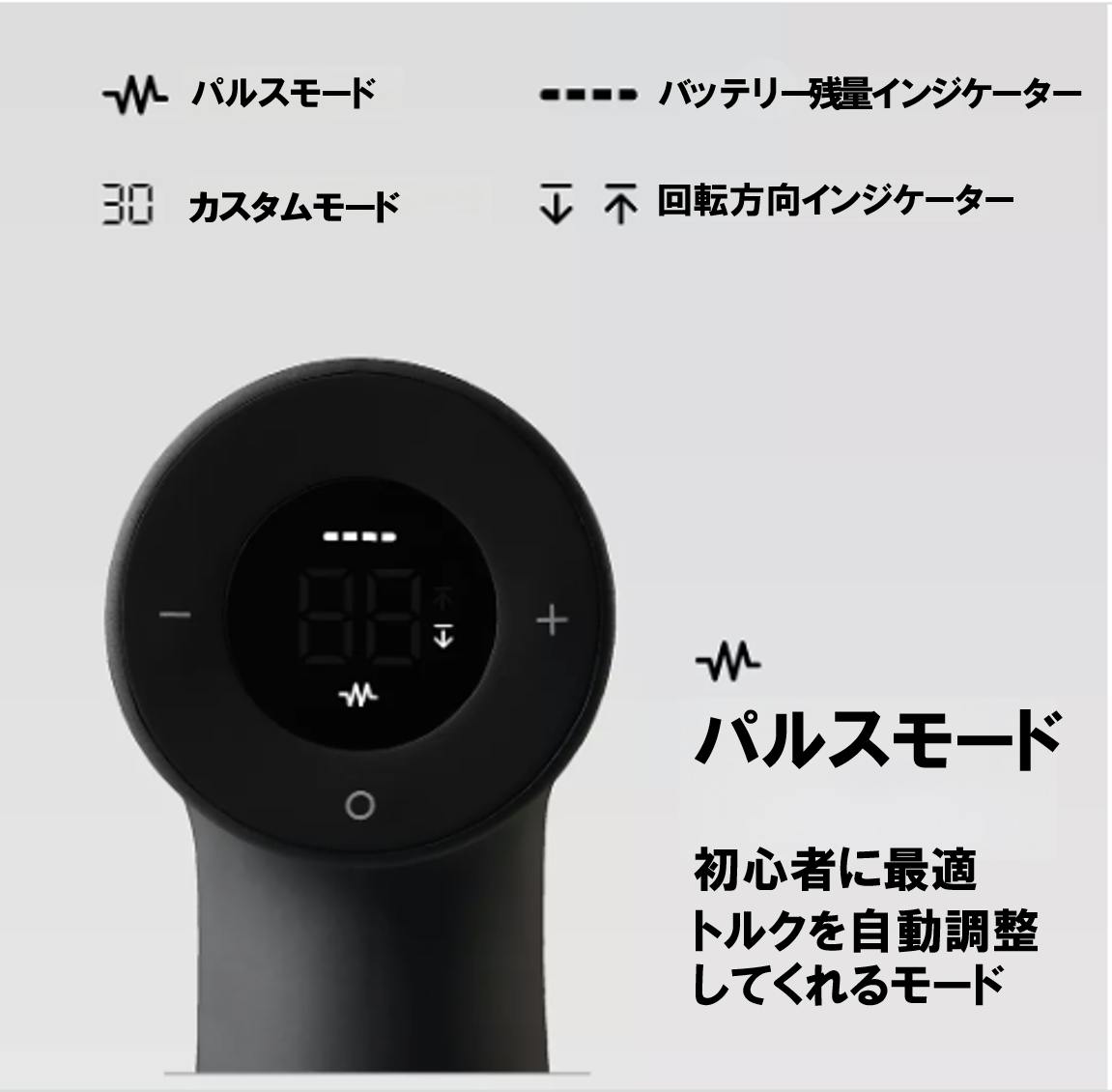 “12V電動ドライバーの背面に搭載しているHD LEDディスプレイはデザイン性が高く、一目で作動状況が分かるよう設計されています。