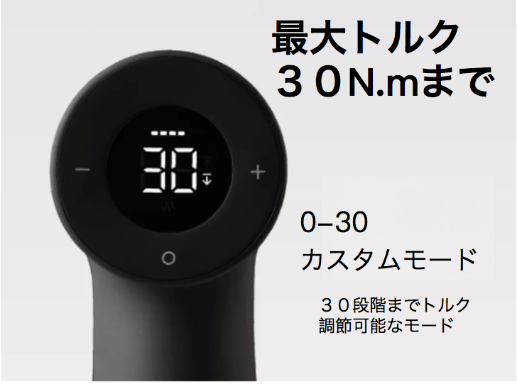 トルクは30段階で調整が可能なため、作業の幅が広がります。