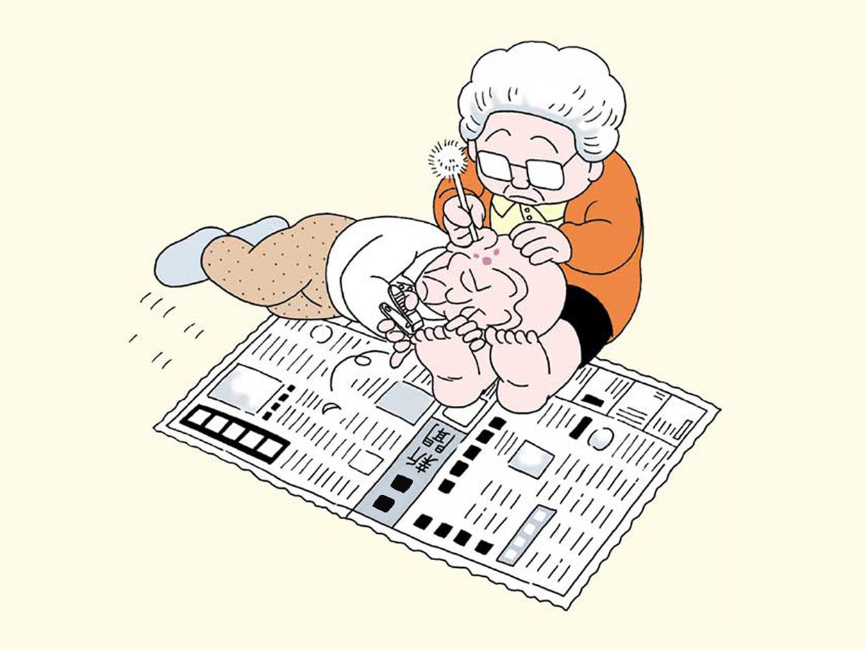 四コマ漫画「そふとそぼ」を、徳島新聞とデイケア&デイサービス専門誌の月刊デイで連載しています。