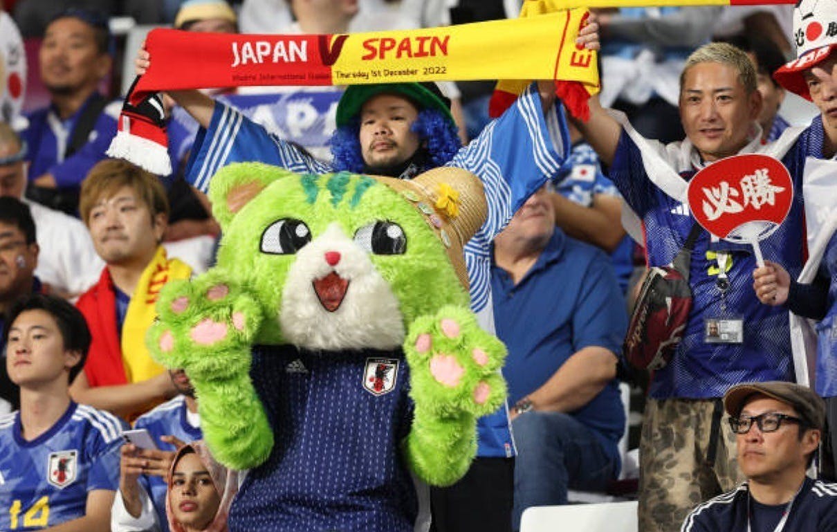 日本サポーターの中に不思議な動きが妙に“ツボる”巨大ネコ出現! 公式映像も注目
