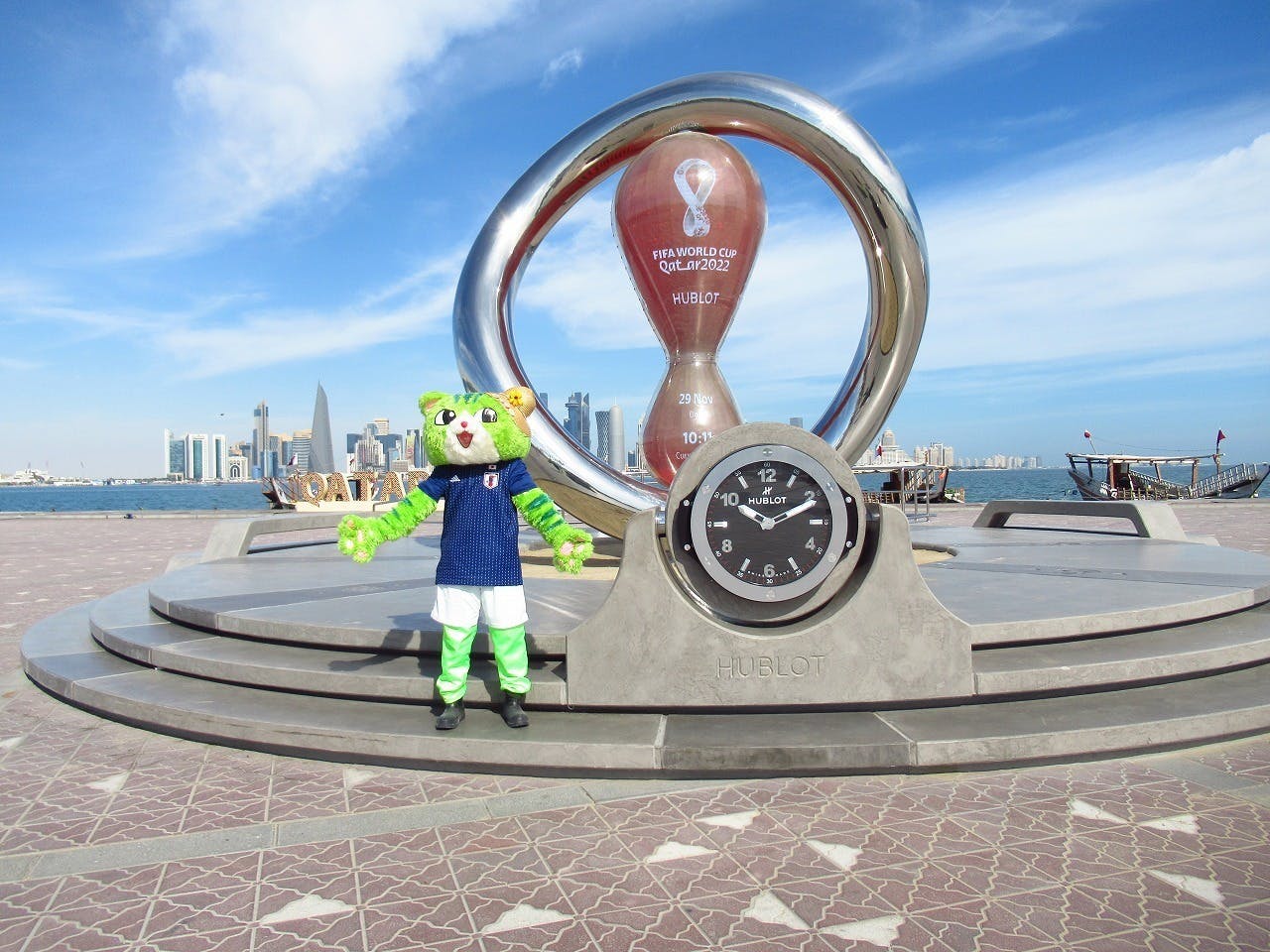 しかし、ワールドカップモニュメントの前で写真を撮るためのらねこくんに頑張ってもらいました。褒めてあげてください!!
