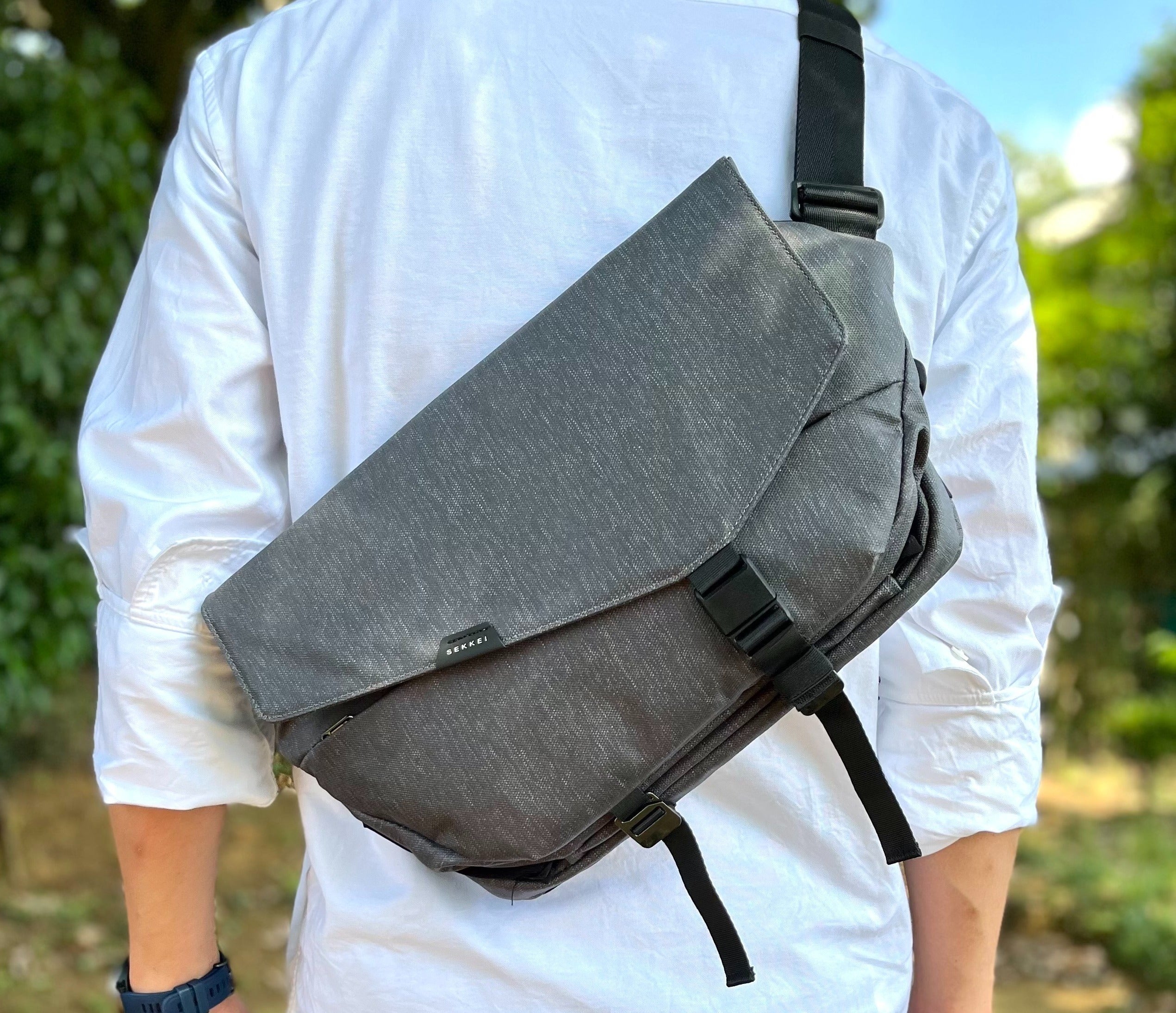 プロダクト名はカッコよくないかも知れませんが、このバッグを創るために集まった多国籍のメンバーの我々が、このアイテムを製作するうえで共通のキーワードとした日本語の「設計」と言うキーワードをそのままこのスリングバッグの名前「SEKKEI」にしました。