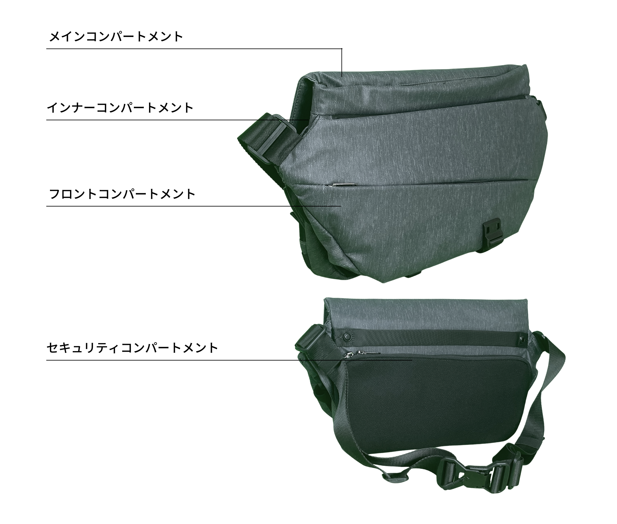 <<開発メンバーのこだわり>>このスリングバッグは「カッコよくて」「使いやすい」をコンセプトに開発を進めました。開発スタートから2年半、何度も改良を重ねて余分な個所を削ってシンプルなこのデザインになりました。