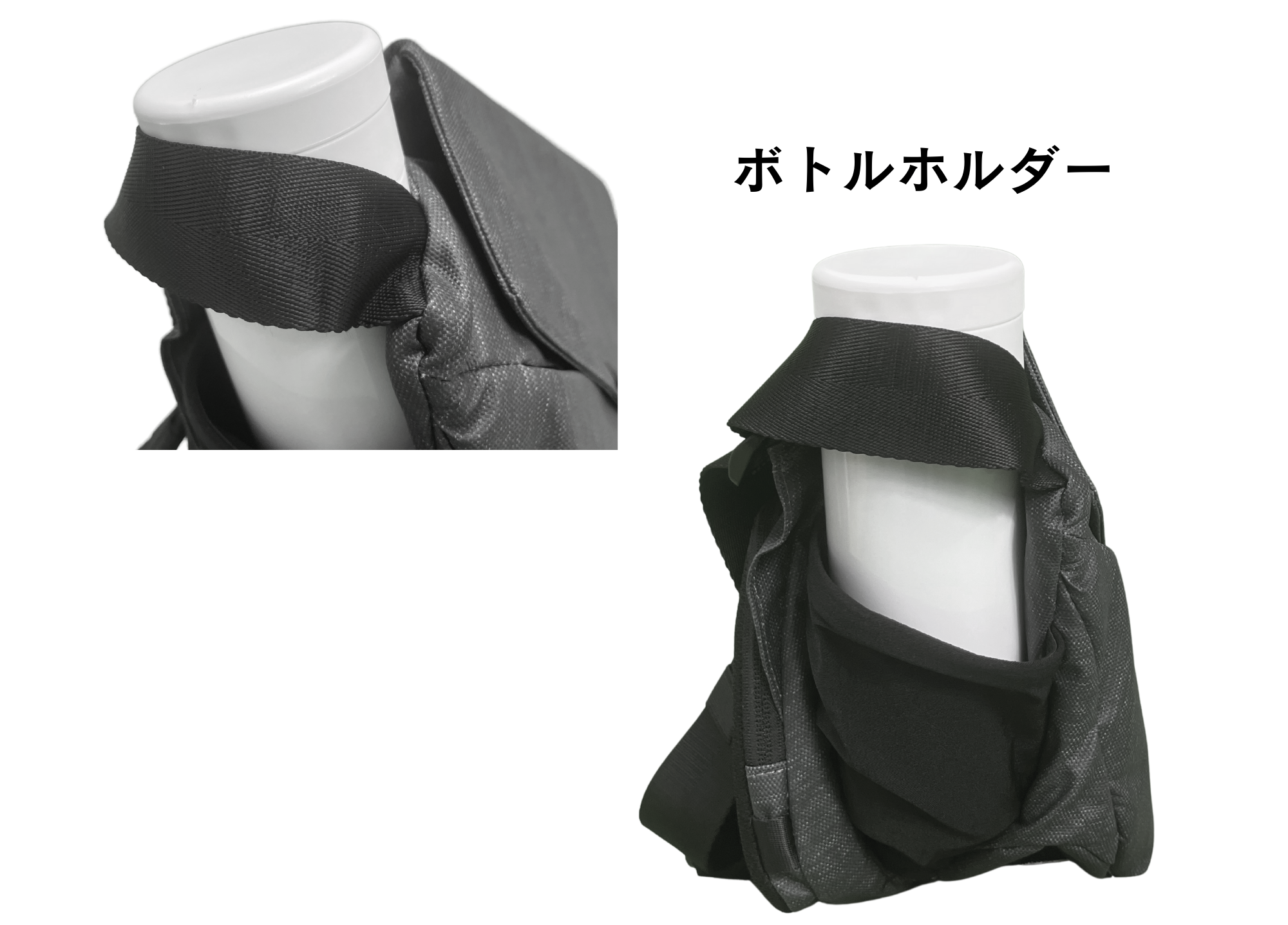※仕様上、ボトルホルダーは左側のみの使用を想定しています。右側でも構造上は使用可能ですが、バックルの向きが左側と違う設計です。USBの充電用のポートと干渉致しますのでご了承ください。