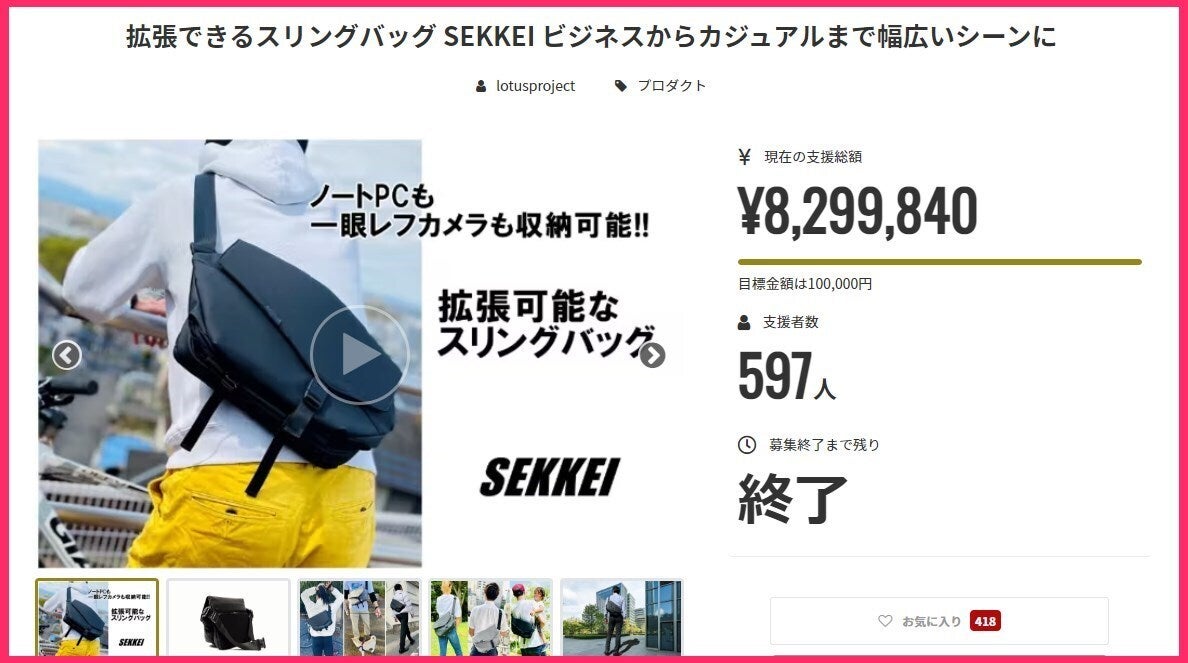 プロジェクトに関する情報・プロジェクトの属性:・・・・スリングバッグプロダクト