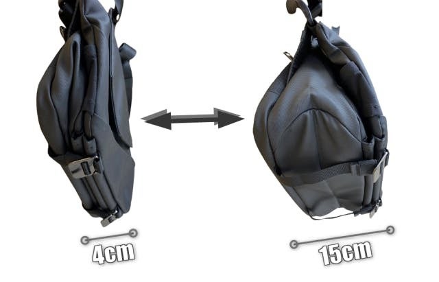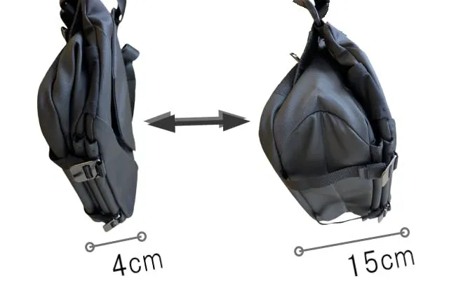 しかし拡張すれば 幅が 4cm → 15cm になります。一眼レフカメラも入ります。
