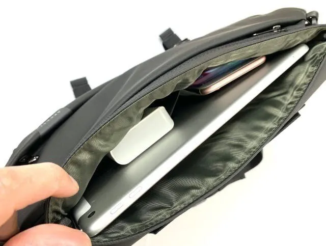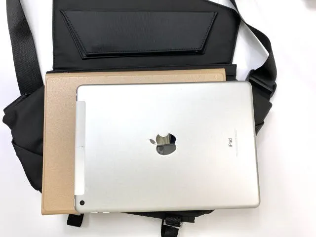A:今作のSEKKEI S-slingには11インチよりも大きいノートパソコンは収納できません。iPadなどのタブレットを持ち運ぶことを可能として設計しています。