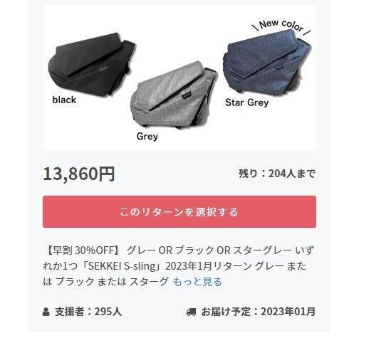皆さま、火曜日の夜に失礼します。 一眼レフカメラも収納できる「スリングバッグ SEKKEI S-sling」本日よりCAMPFIREでクラウドファンディングをスタートしました。今回は新色「スターグレー」が登場し、ブラック、グレーと合わせて3色のカラーラインアップとなっております。※カラー選択のオプション機能を失念しております。ご希望のカラーについてはご支援後に「備考欄」にご記載ください。皆様の支援をお待ちしております。よろしくお願いします!