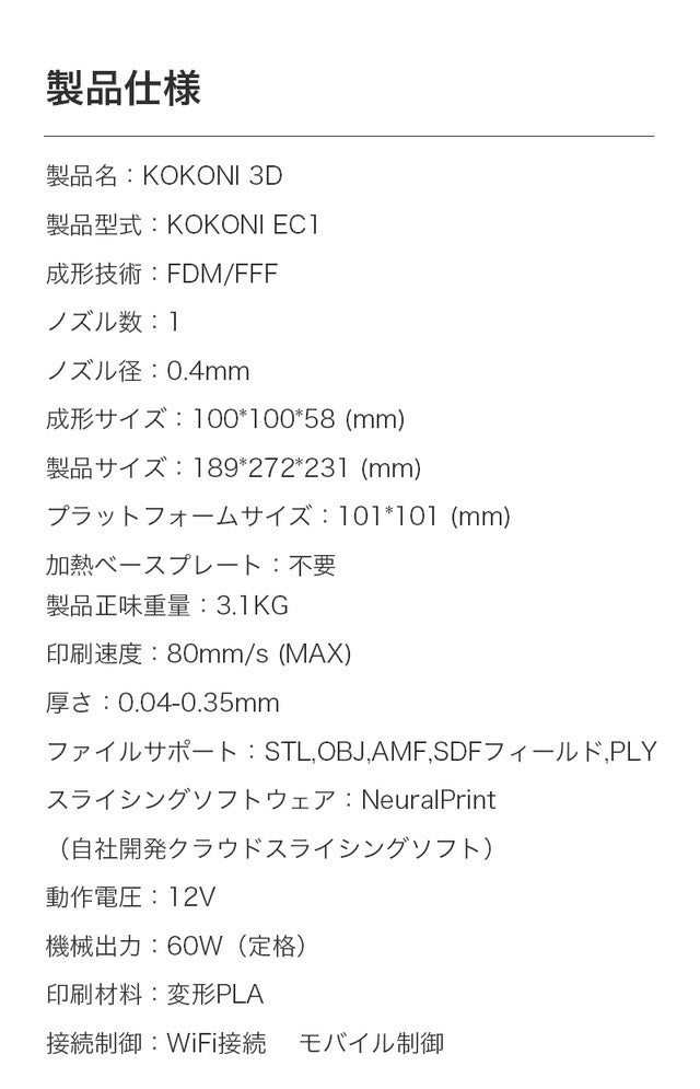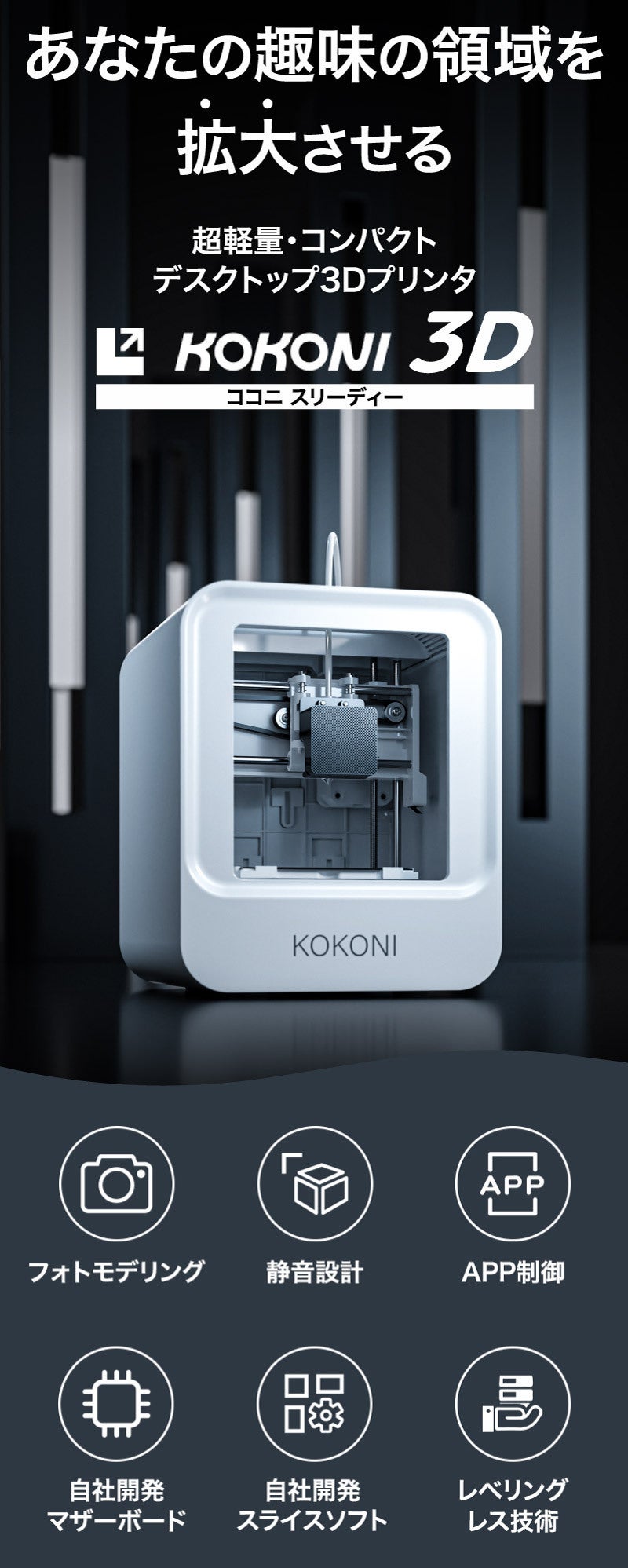 私のように3Dプリンタを諦めていた方にKOKONI 3Dをお届けすることで、未来への憧れを実現するお手伝いができることをとても嬉しく、楽しみに思っています。