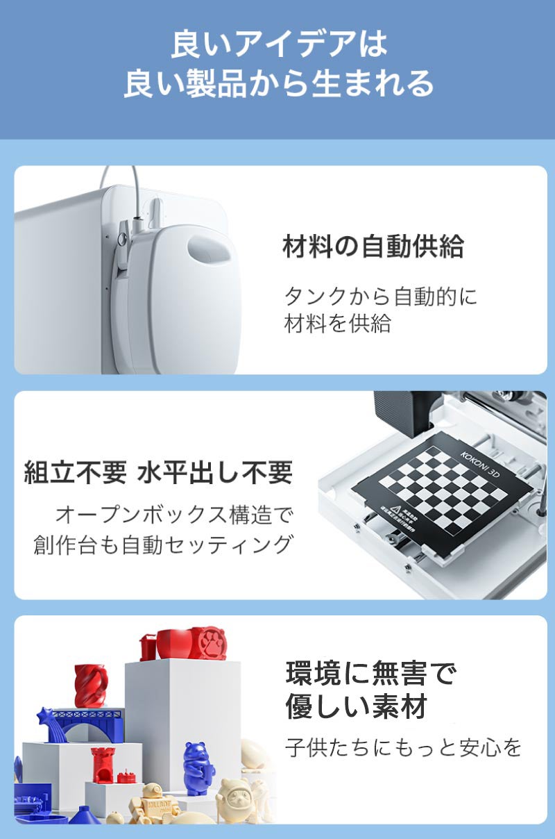 知識がなくても、広いスペースを用意しなくても、莫大な資金を用意しなくても、KOKONI 3Dなら、憧れの未来を現実にすることができるんです。