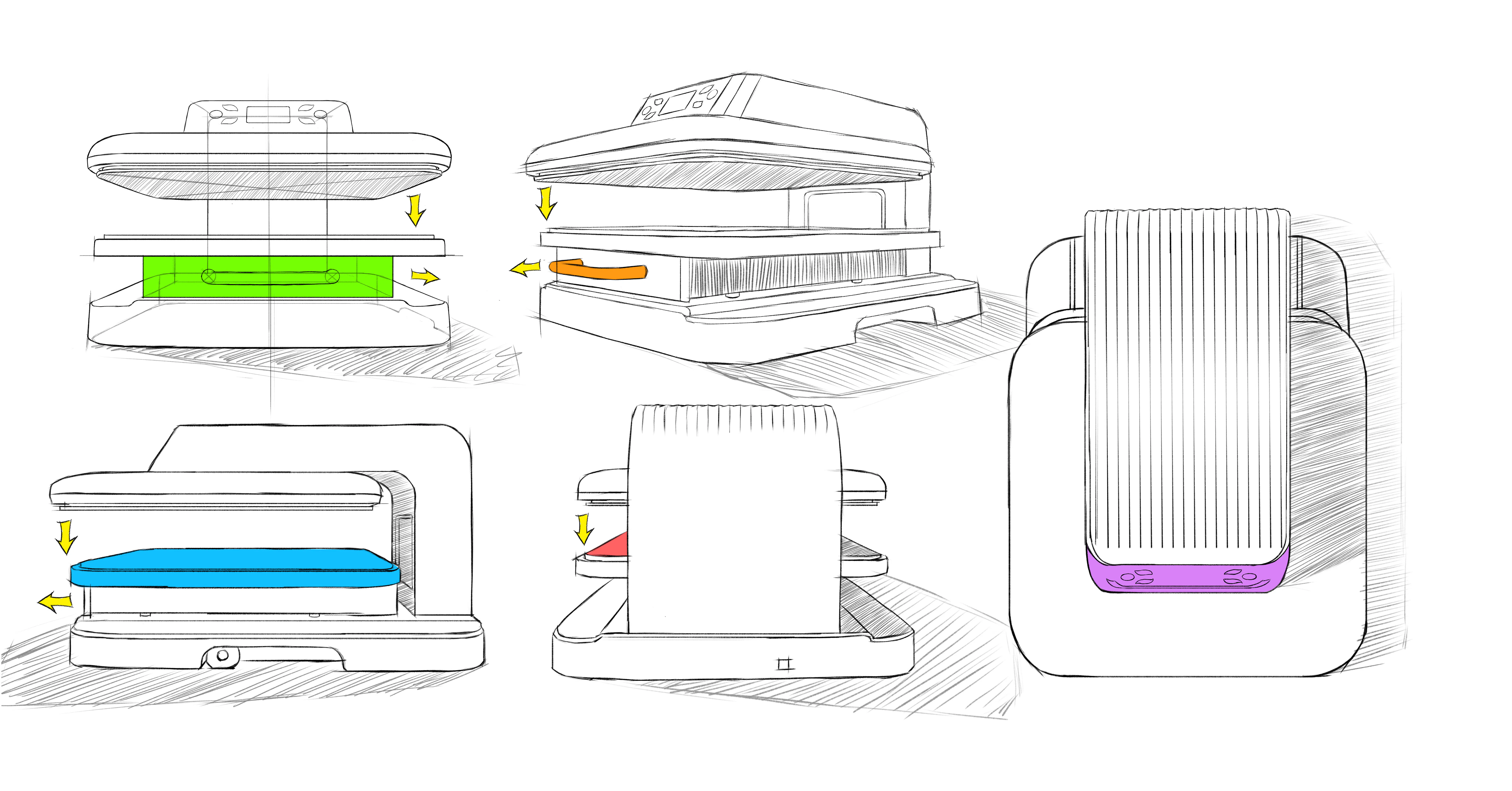 もちろん、HTVRONT誕生以前から、個人でオリジナルプリントを楽しむ方法やそのための機械はありました。しかし、従来のアイロンプレス機は、ご家庭で楽しむには多くの課題点がありました。