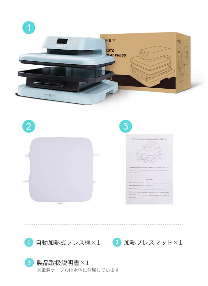 ①自動プレス :ボタンひとつで自動プレス&転写終了後は自動オープン