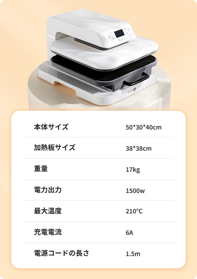 これらの課題を全て解決し、ご家庭でも安心して使うことのできるアイロンプレス機として開発されたのが、この「HTVRONT」です。