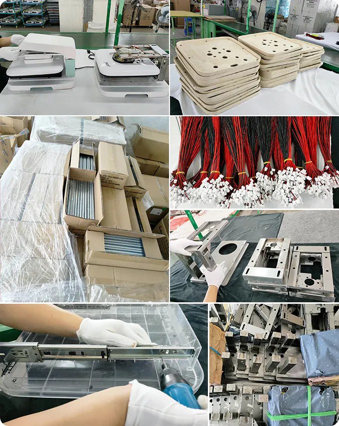 「自動」ボタンをオンにすると、材料を置き、置いた引き出しを押し込むという動作を繰り返すだけで、機械が自動的に同じ動作を繰り返してくれます。自動プレスのための「スタートボタン」さえ繰り返し押す必要はありません。