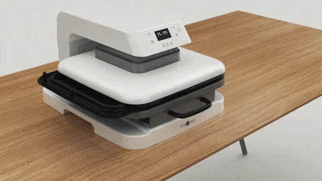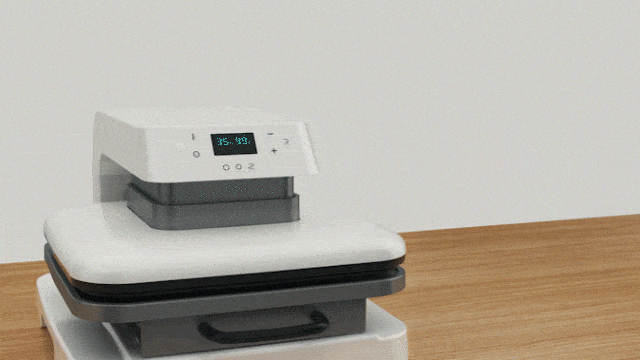 HTVRONTのまず一つ目の特徴は、自動プレスをしてくれること!従来の製品では、生地をセットした後に手動でプレスする必要がありました、HTVRONTは手間も体力も必要なこの作業を自動化し、煩わしい作業を「スタートボタンを押すだけ」へと変えました。