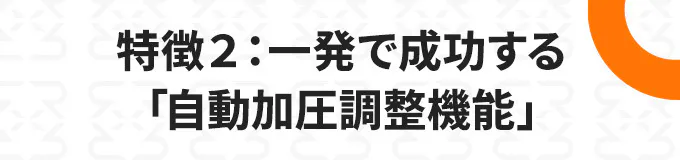 ②自動加圧調整:厚さ(最大2.5cm)と素材に合わせて自動で圧力を調整