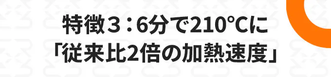 高精度かつ効率的な加熱エンジンにより、従来製品と比較して加熱速度は約2倍に。わずか4分で160°Cに到達し、6分後には最高温度の210°Cに達します。