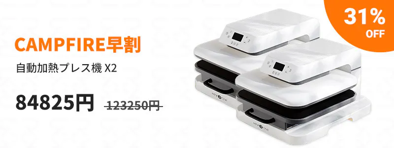 熱転写マシンとその材料の製造と販売において長年の経験を持つ会社として、私達はCAMPFIREでのキャンペーン実行に自信を持っています。但し、特に現在の世界的コロナの大流行と、予期しない配送遅延の可能性がある配送制限が発生する可能性はございます。