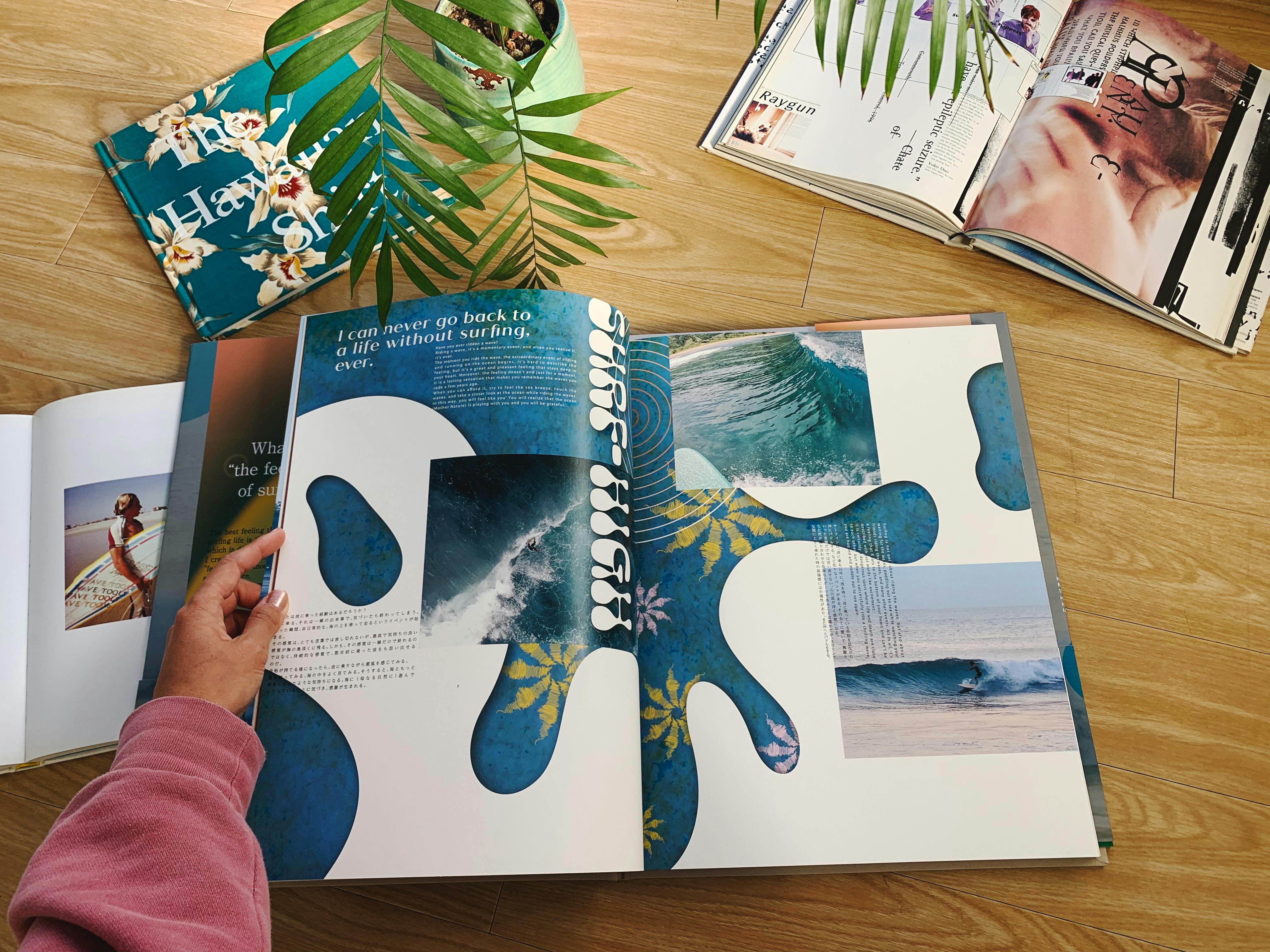 ”The Feelings”は、第一節から第八節まで読むにつれ、サーフィンの”あの感覚”をグラデーションのように感じられるようになっています。120ページ以上あるので、視覚的にも色々な刺激を受けることができるアートブックを完成させることができました。