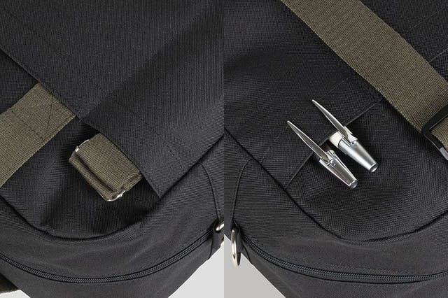 バッグ背面の両端には小さな収納スペースがあるので、クロス紐やよく使うボールペンなどを入れて使用可能です。