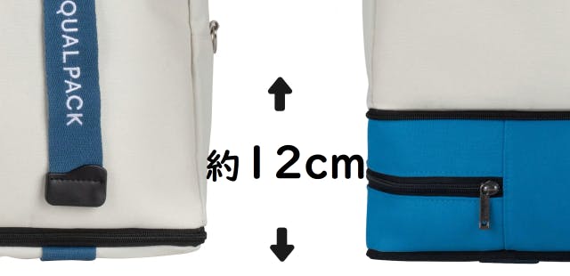 拡張スペースには靴や運動後の洗濯ものなどを入れて他の荷物と混ざらないようにしてくれます。