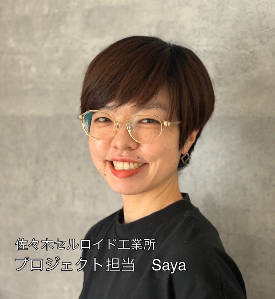 改めまして、私、佐々木セルロイド工業所で今回クラウドファンディングを主に運営しておりますSayaと申します。私がメガネ業界に飛び込んだのは約5年前、それまでは通販会社でインテリアの商品企画を行っておりました。ご縁があり、メガネ業界に飛び込んで早5年。いつも思うのは、「日本製のメガネって本当にたくさんの職人が手塩にかけて、掛けてくださるお客様への思いを込めて、一本一本丁寧に造られているのだな」ということです。一本のメガネを2、3人の職人さんで囲み、もう少し綺麗に仕上げるためにはどうしたら良いか、と相談している光景は社内では日常茶飯事。