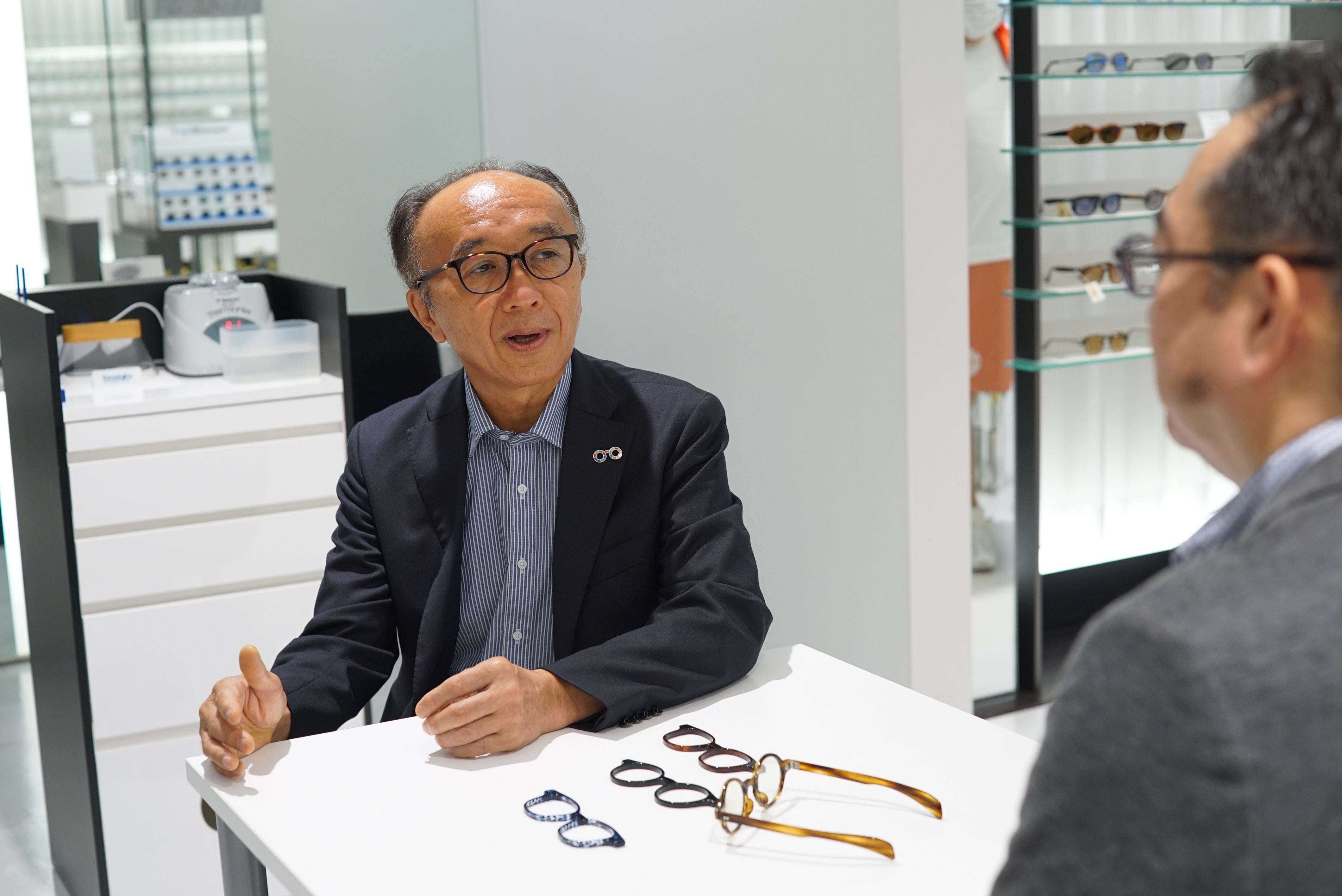 谷口会長、弊社赤木共に鯖江のメガネ造りをより広く知ってほしいという想いが共通でした。プラスチックのおもちゃがまだセルロイド製だった時代を知っているお二人だからこその想いかもしれません。